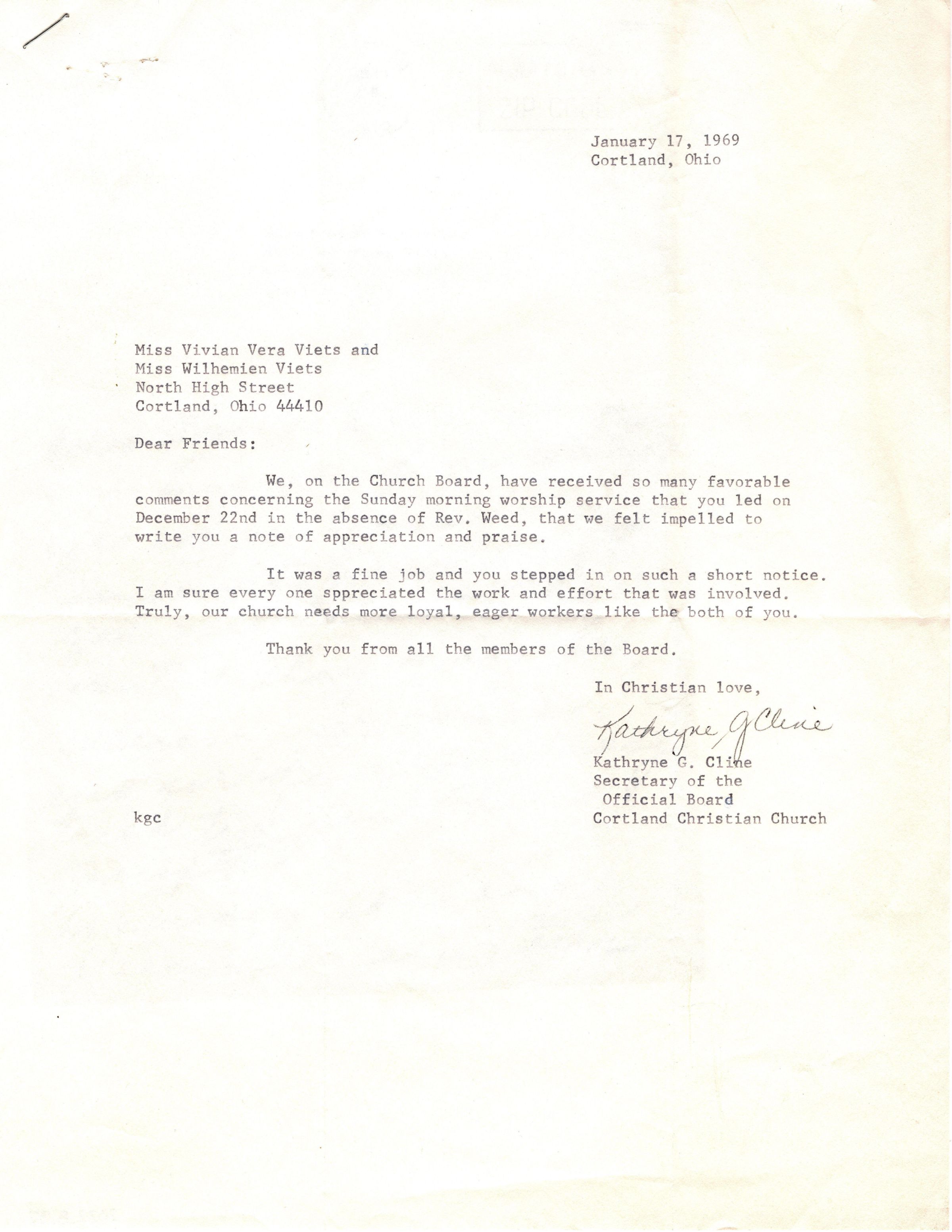 Letter from Cortland Christian Church to the Viets sistesCollection