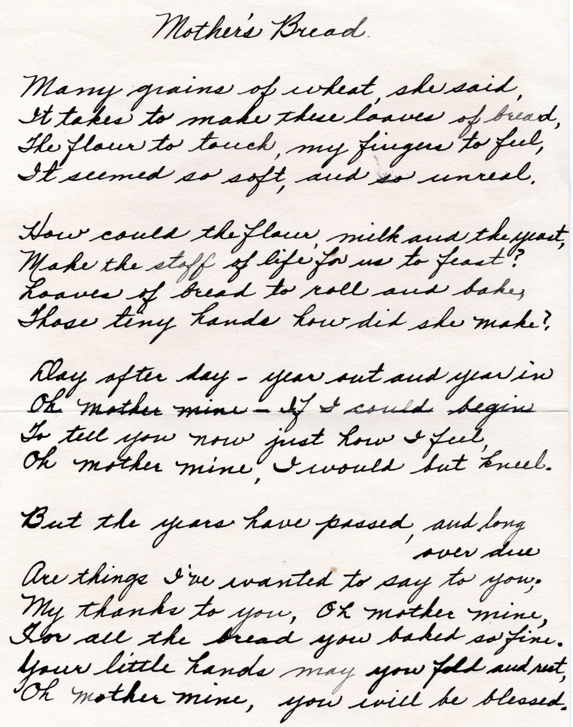Poem - "Mother's Bread" - Author UnknownEntry/Object ID
