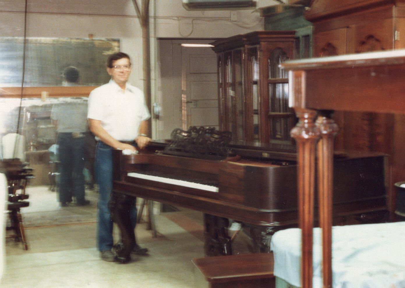 Paul Plunkitt at his shop with the Marvin Piano during restorationPhotograph Details