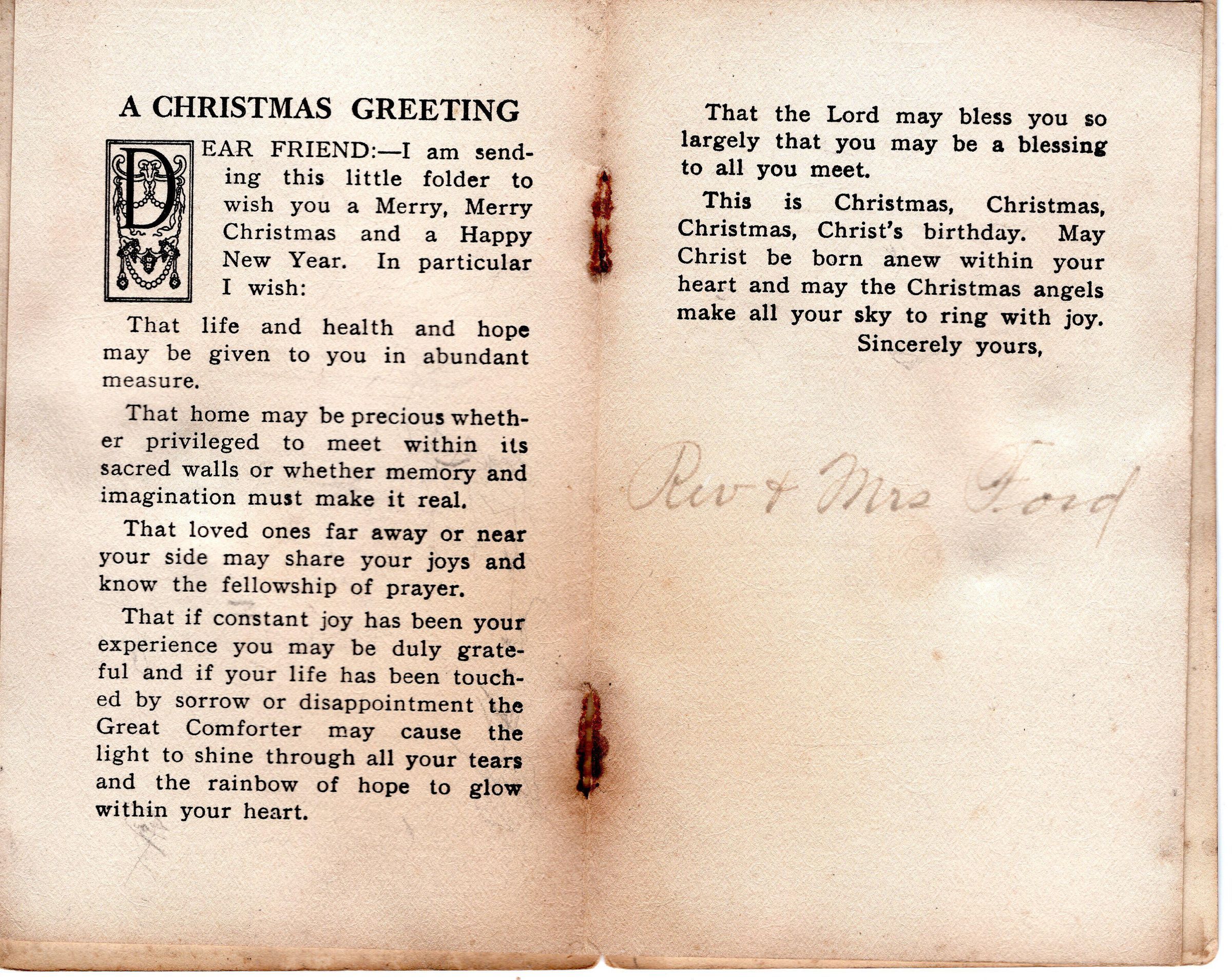 A small folder that includes "Christmas Bells" by Longfellow and a message of Christmas GreetingCollection