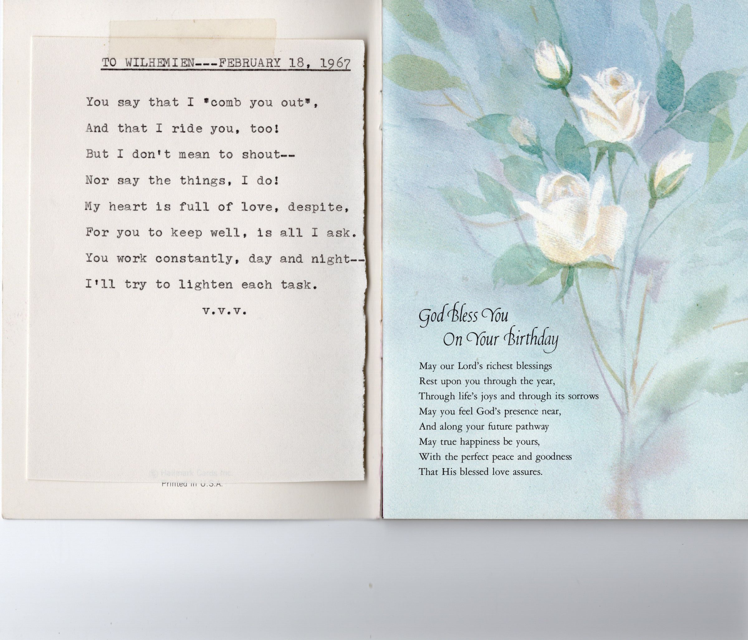 Treasury of Birthday Thoughts Card from Vera to Wilhemien Viets 1967Entry/Object ID