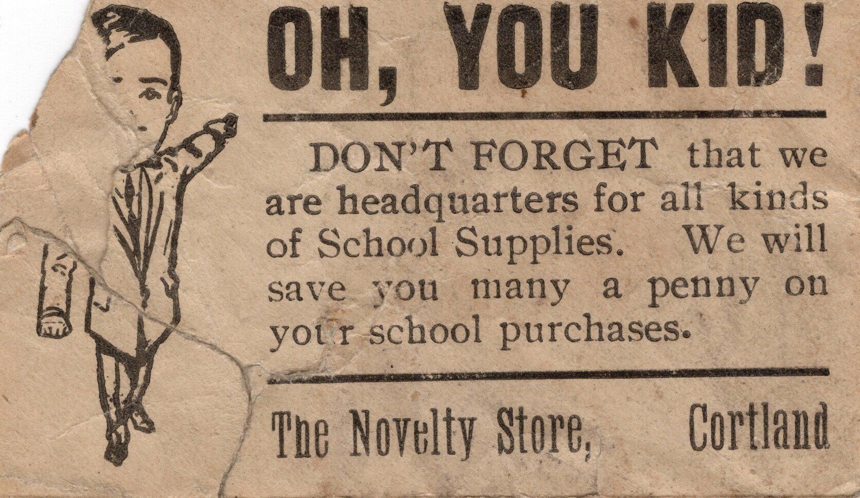 The Novelty Store card advertising school supplies