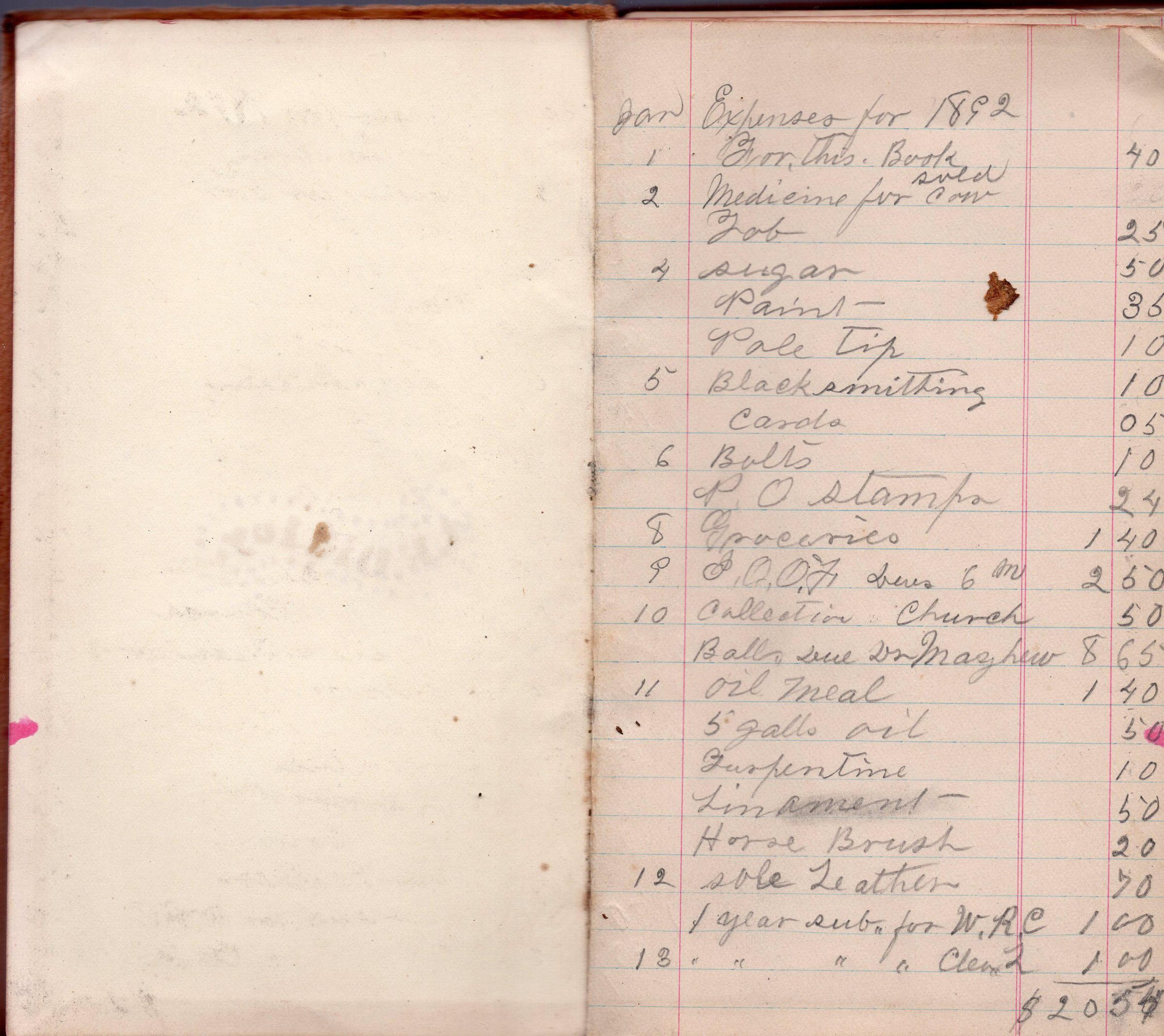 A. E. Dilley Journal 1892 Leather BoundCollection