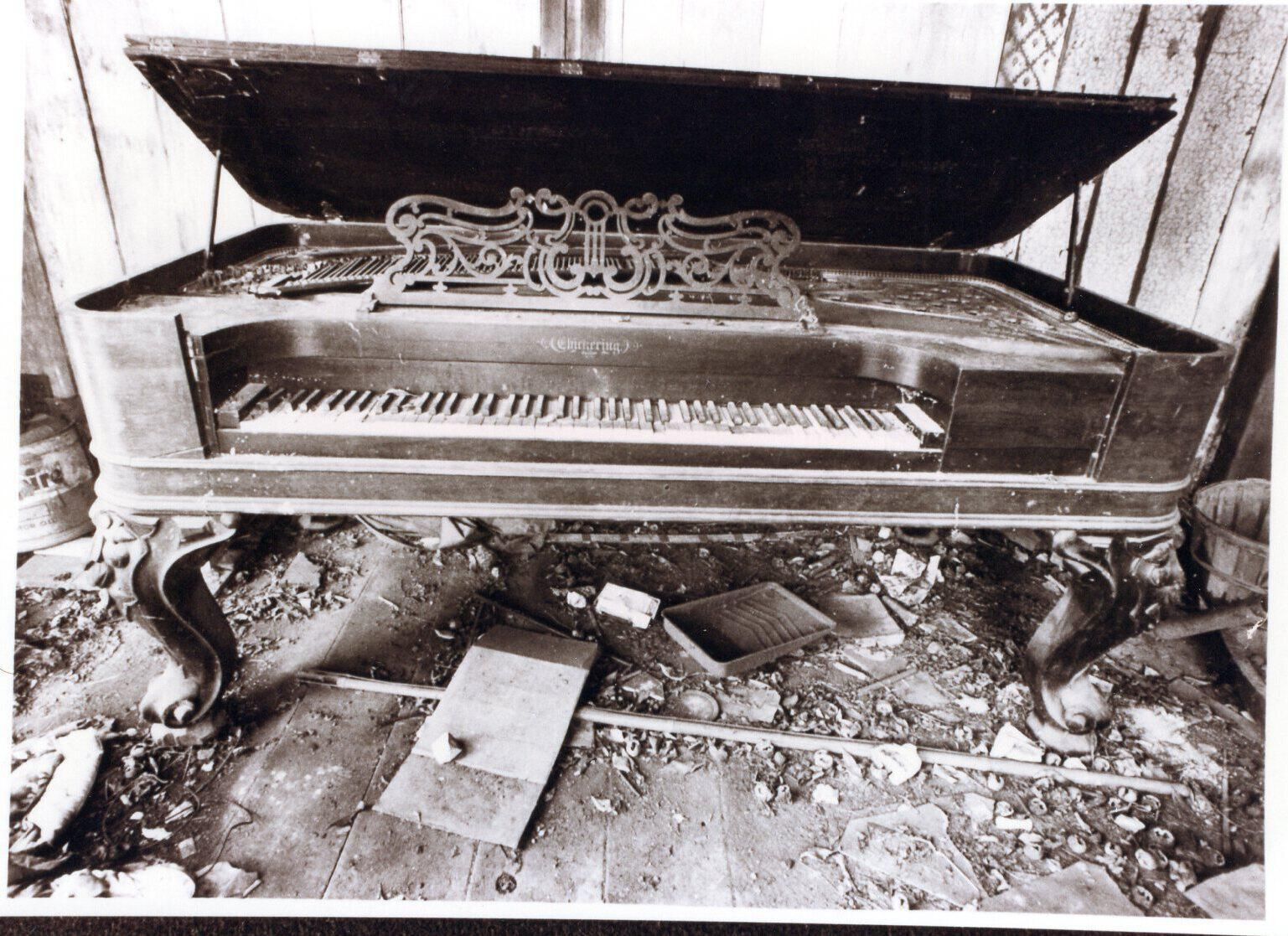Photo of the Bessie Marvin Piano as discovered in a shed behind the Marvin HouseCollection