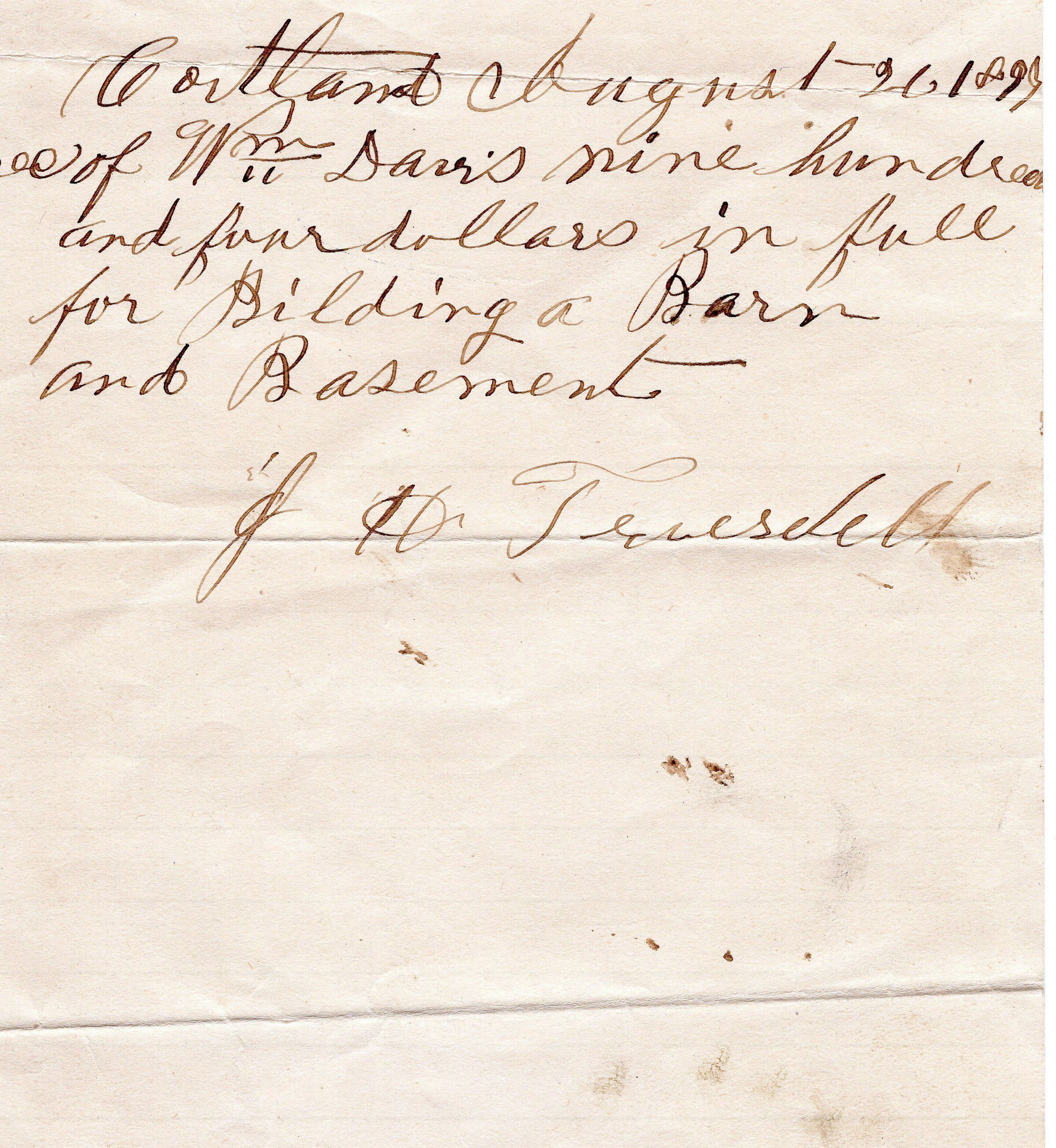 Receipt for payment to J H Truesdell from William Davis for buildingsCollection