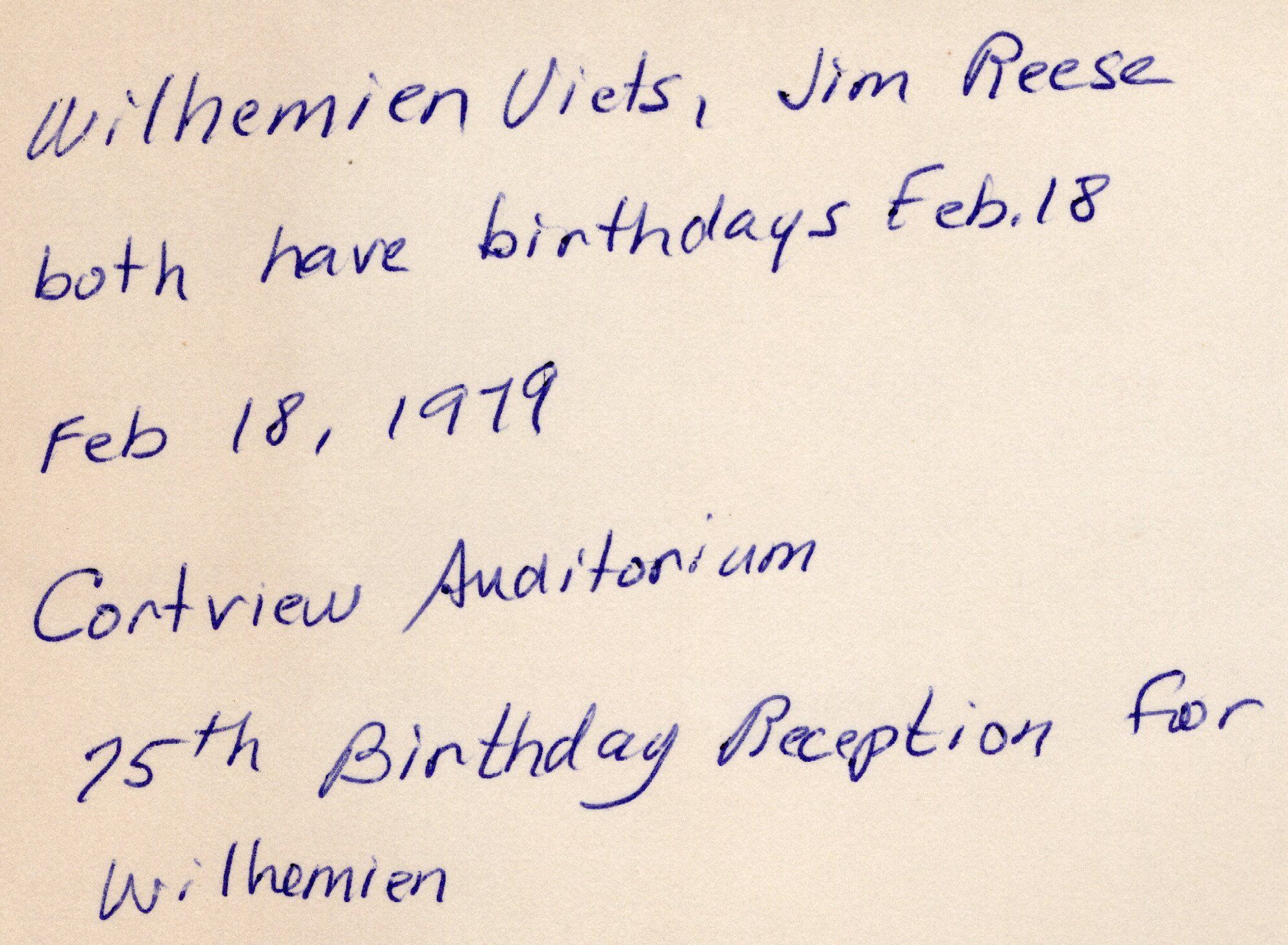 Wilhemien W. Viets at 75th Birthday with Jim ReeseEntry/Object ID