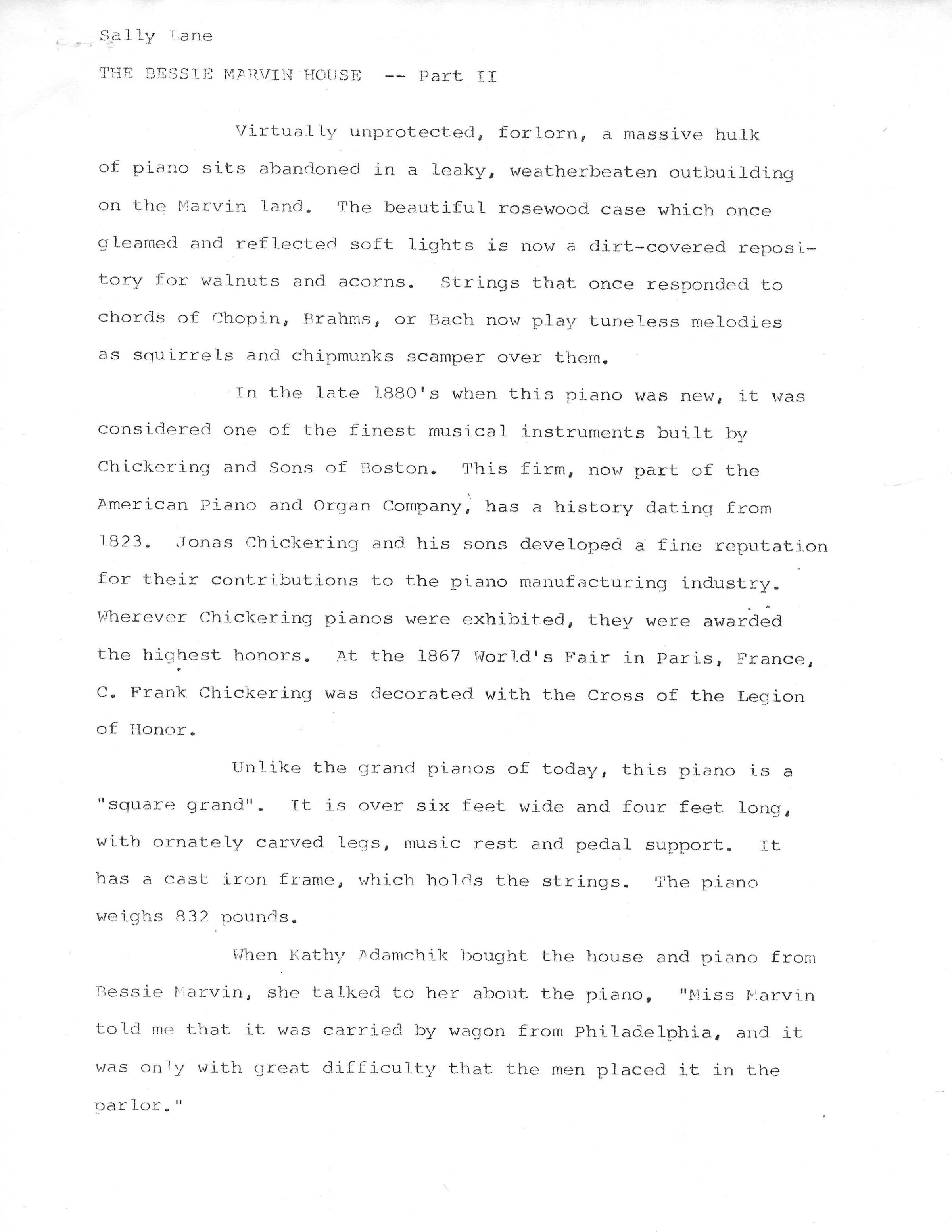 Taylor, Trene, Marvin, Joseph, Richards, Mark, Dray, mark, Marvin, Lee, Lane, Ralph, Marvin, Bessie, Ballard, Mildred, Adamchik, Kathy, Chickering, Jonas, Springer, Mrs. Lee, Springer, Bill, Dana, Will, McClellan, Altha, Shawyer, Helen Dray, Lane, Sally, Chickering, C. Frank, Marvin, Captain Ezra
