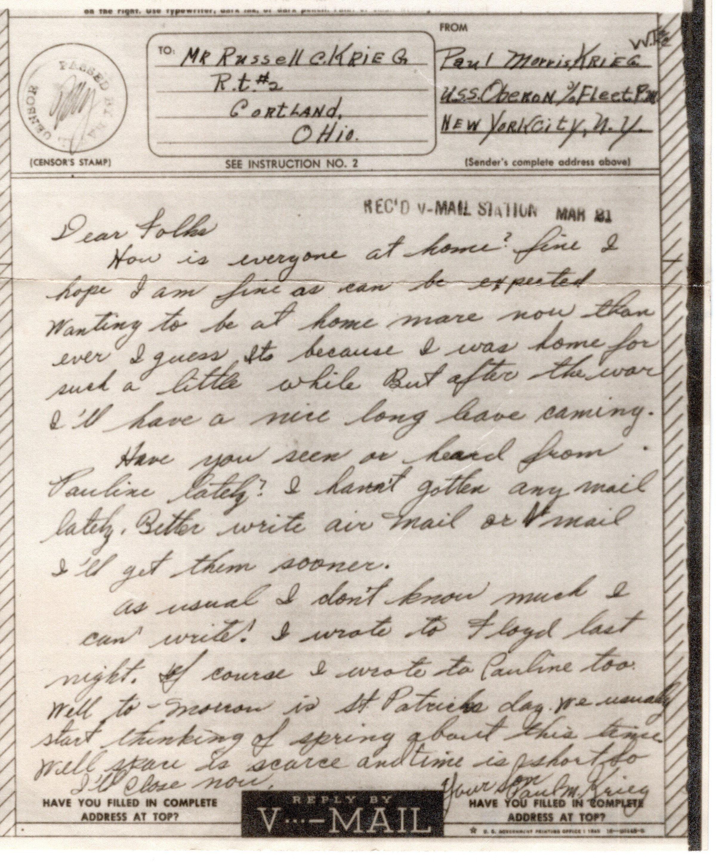 V-Mail from Paul Crieg from North Africa in 1943Entry/Object ID