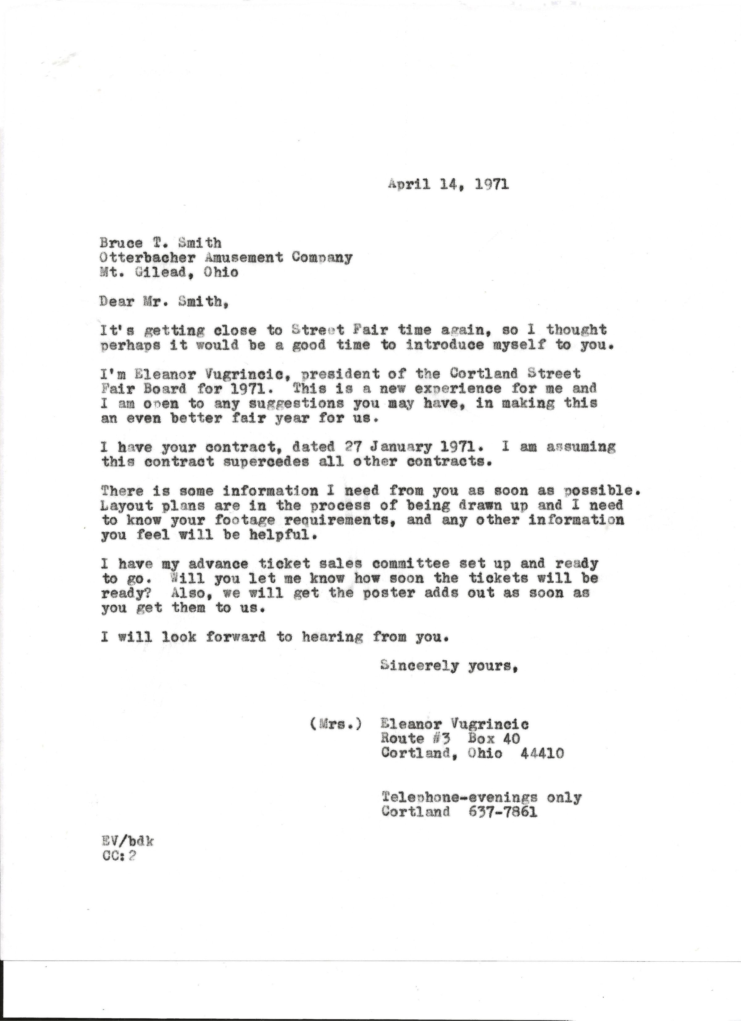 Street Fair Correspondence with OtterBacher Amusement CompanyEntry/Object ID