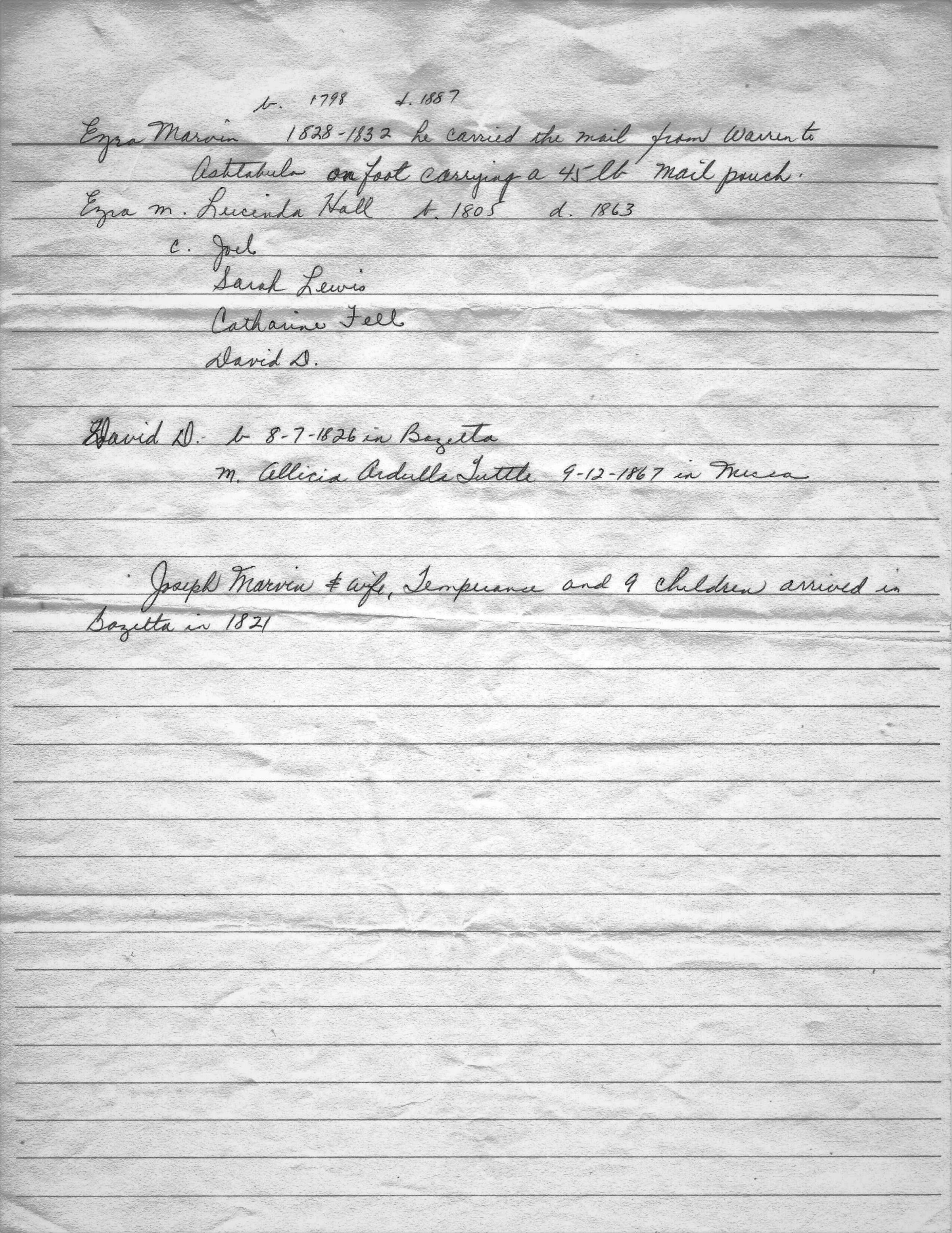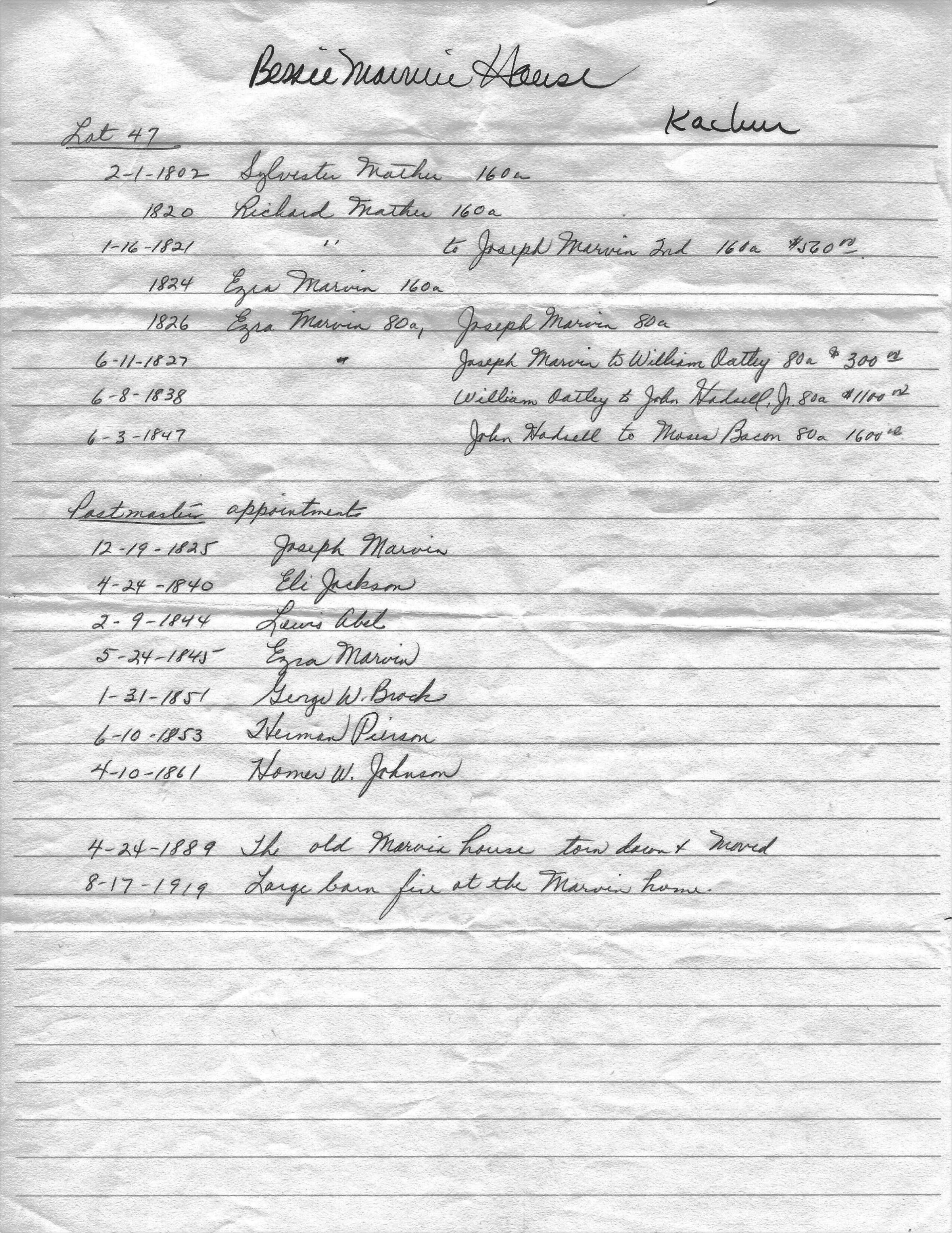Marvin, Catherine Fell, Abel, Lewis, Brock, George w., Hadull, John, Marvin, Joel, Johnson, Homer W., Jackson, Eli, Marvin, Joseph, Hall, Lucinda, Mather, Sylvester, Peirson, Herman, Marvin, Sarah Lewis, Oatley, William, Mather, Richard, Bacon, Moses, Tuttle, Alice, Marvin, Temperance Miller, Marvin, Captain Ezra