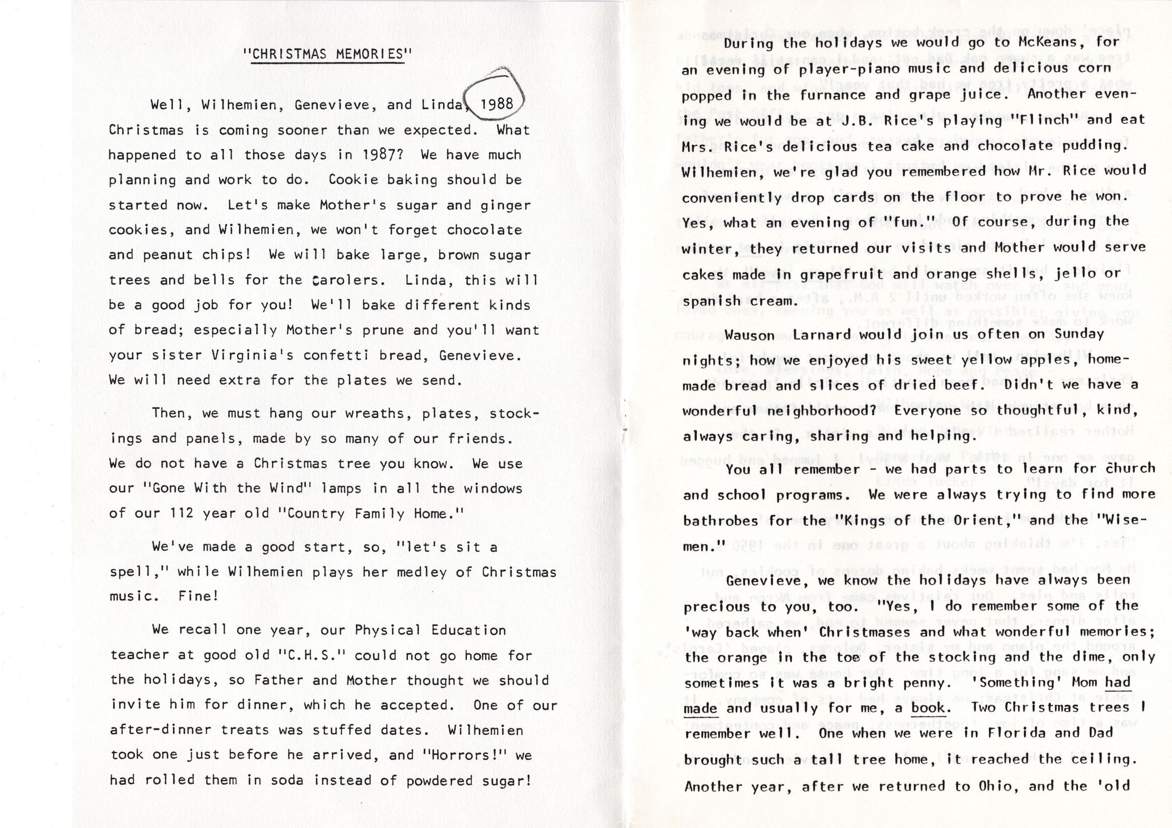"Christmas Memories" booklet Christmas card (1988)
