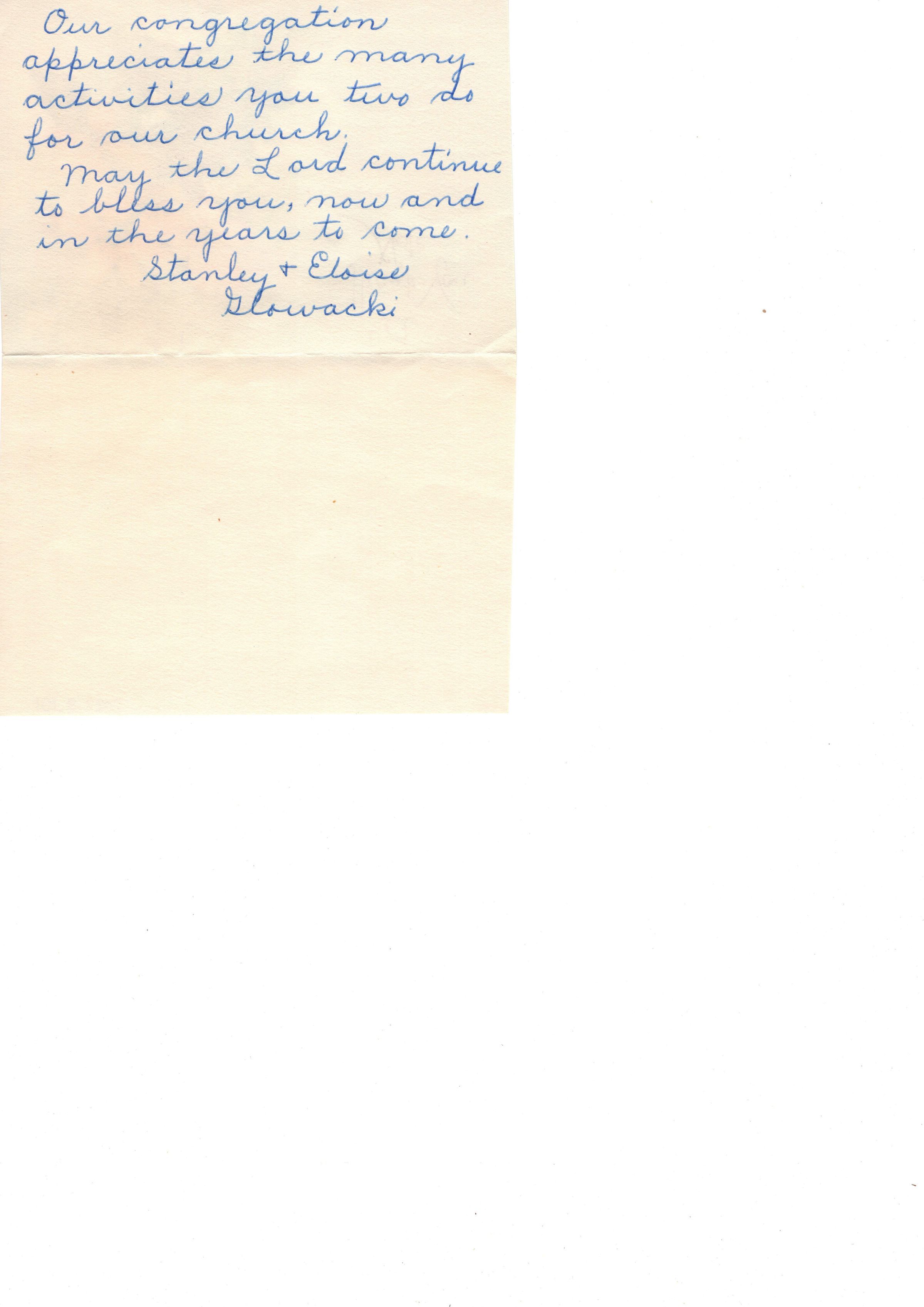 Note from Stanley and Eloise Glowacki to WilhemienCollection