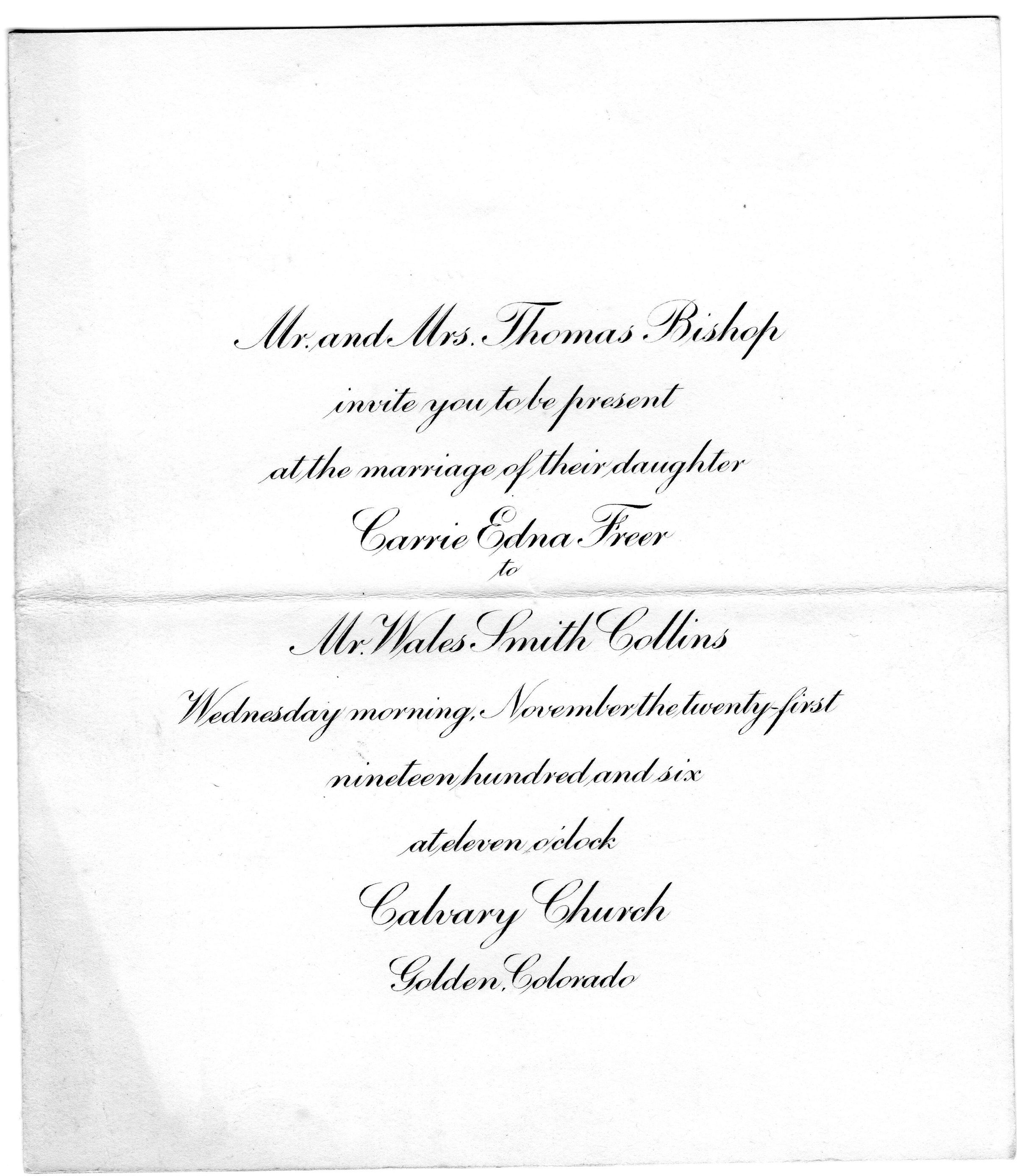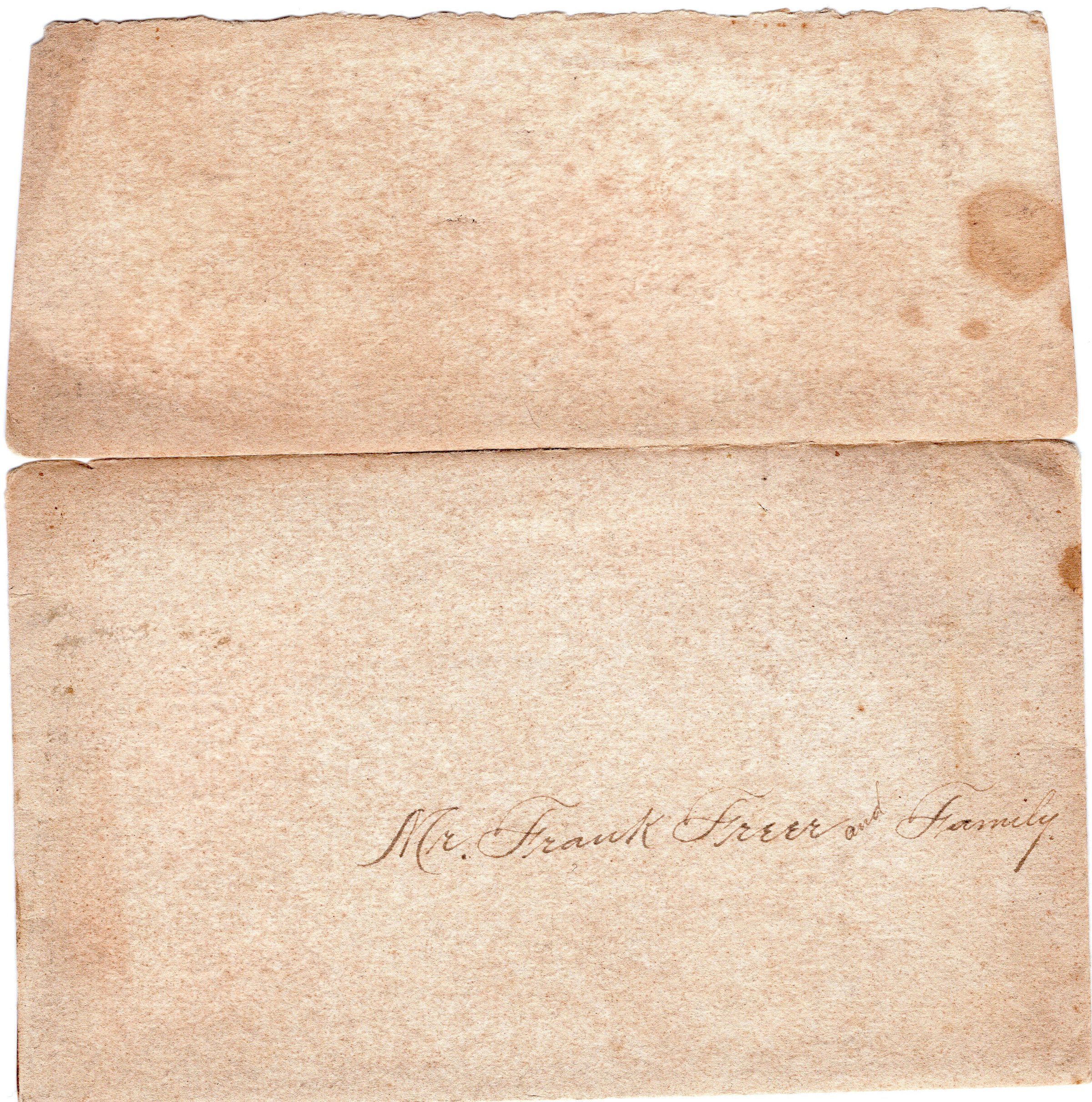 Invitation from Mr. and Mrs. Thomas Bishop to Mr. Frank Freer and Family