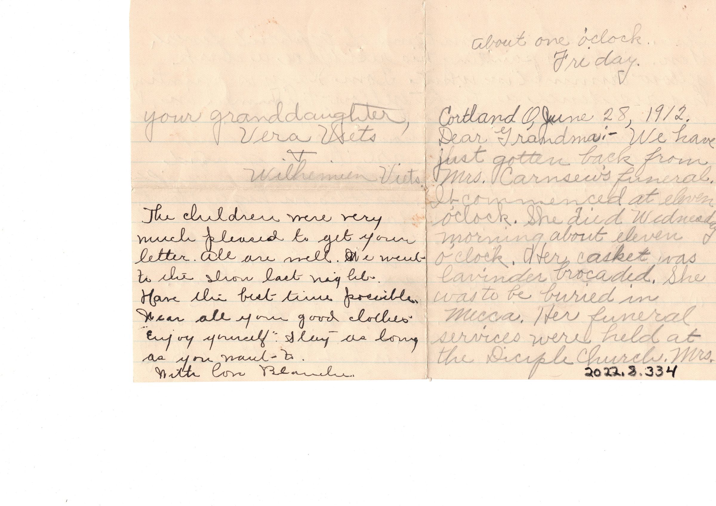 Letter from Vera, Wilhemien, and Blanche to Grandma on June 28, 1912Collection