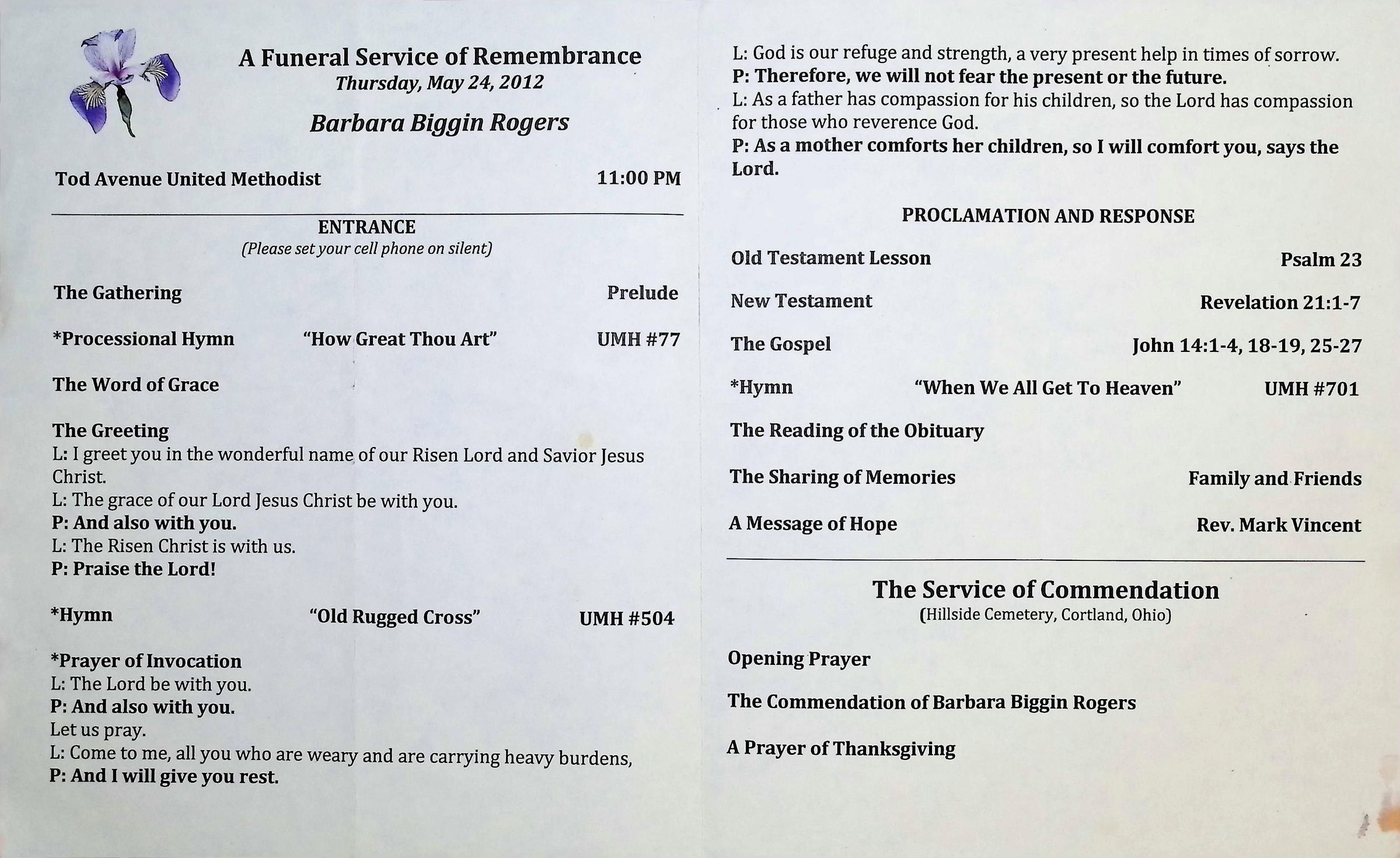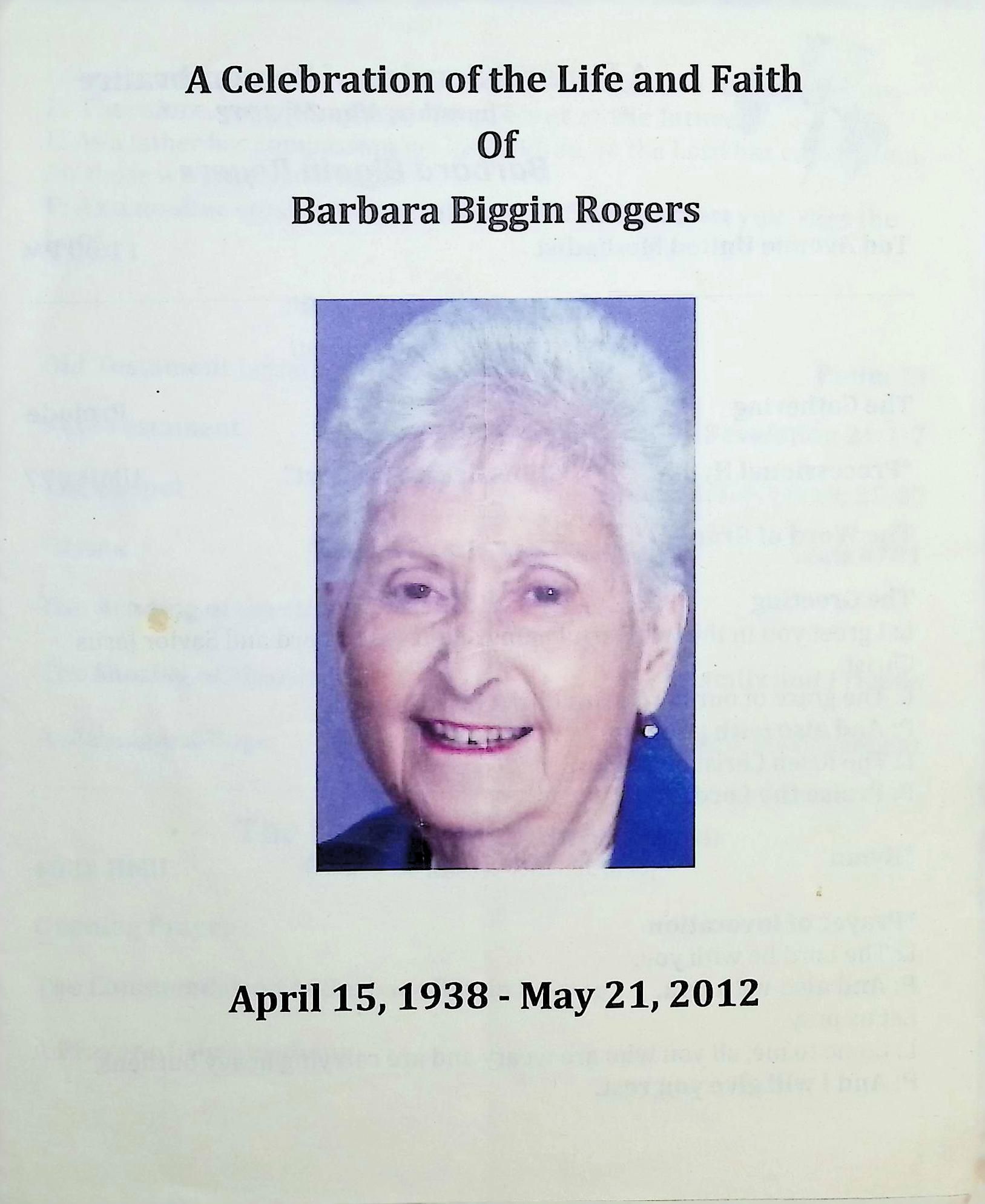 Funeral Service program for Barbara Biggin RogersEntry/Object ID