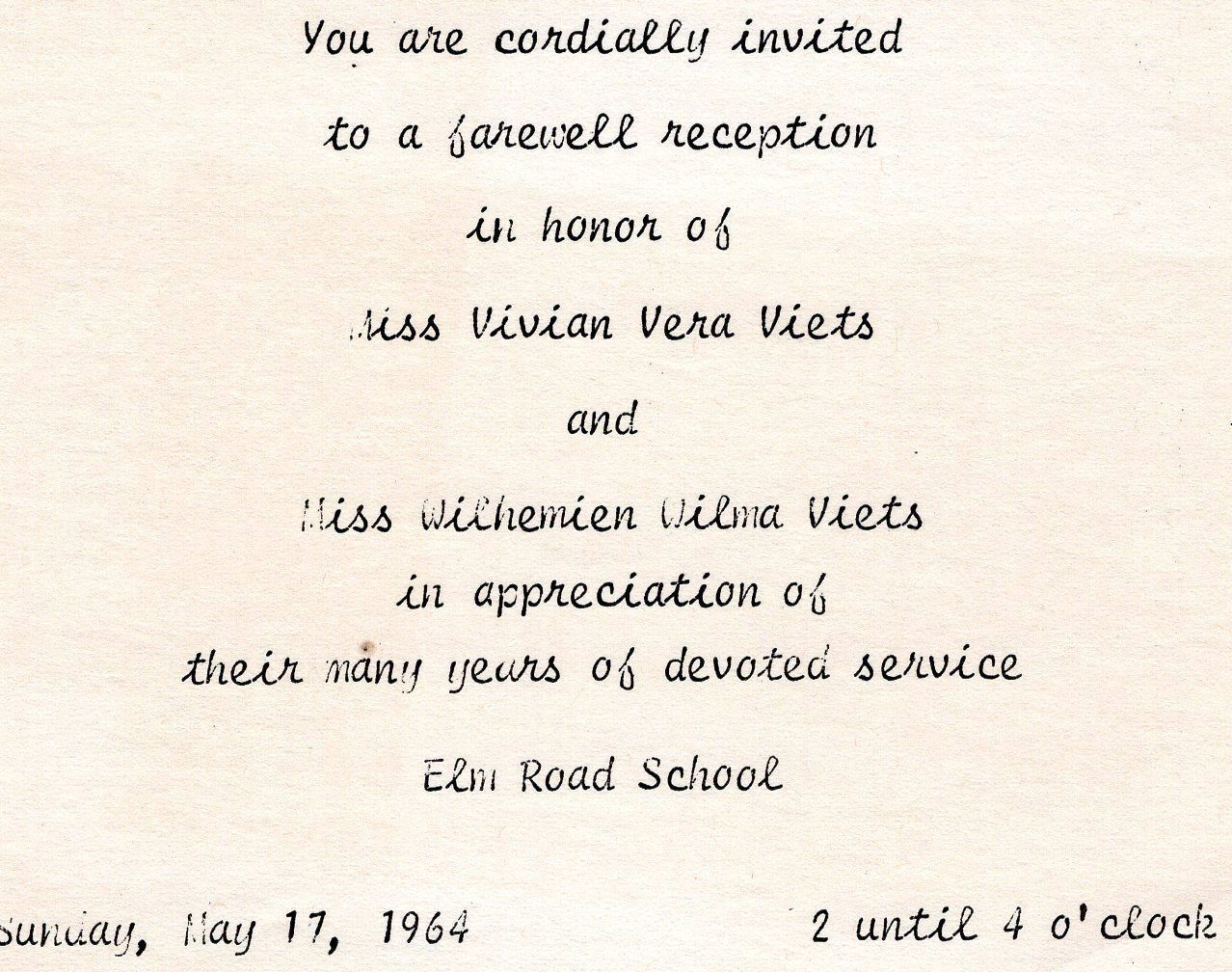 Invitation to the retirement reception for Vera and Wilhemien VietsCollection