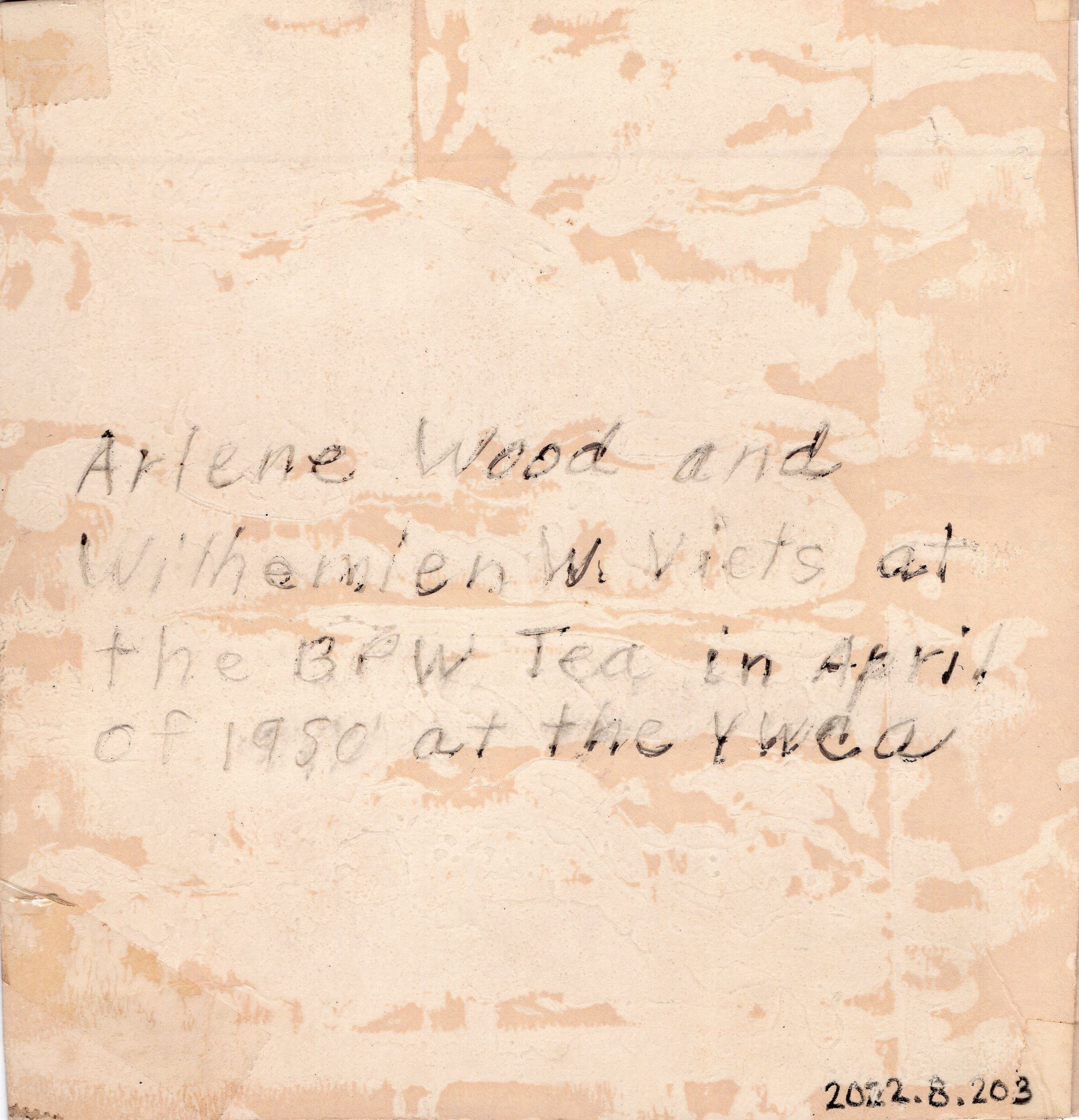 Wilhemien Viets and Arlene Wood April 1980 BPW tea at Warren YWCAPhotograph Details