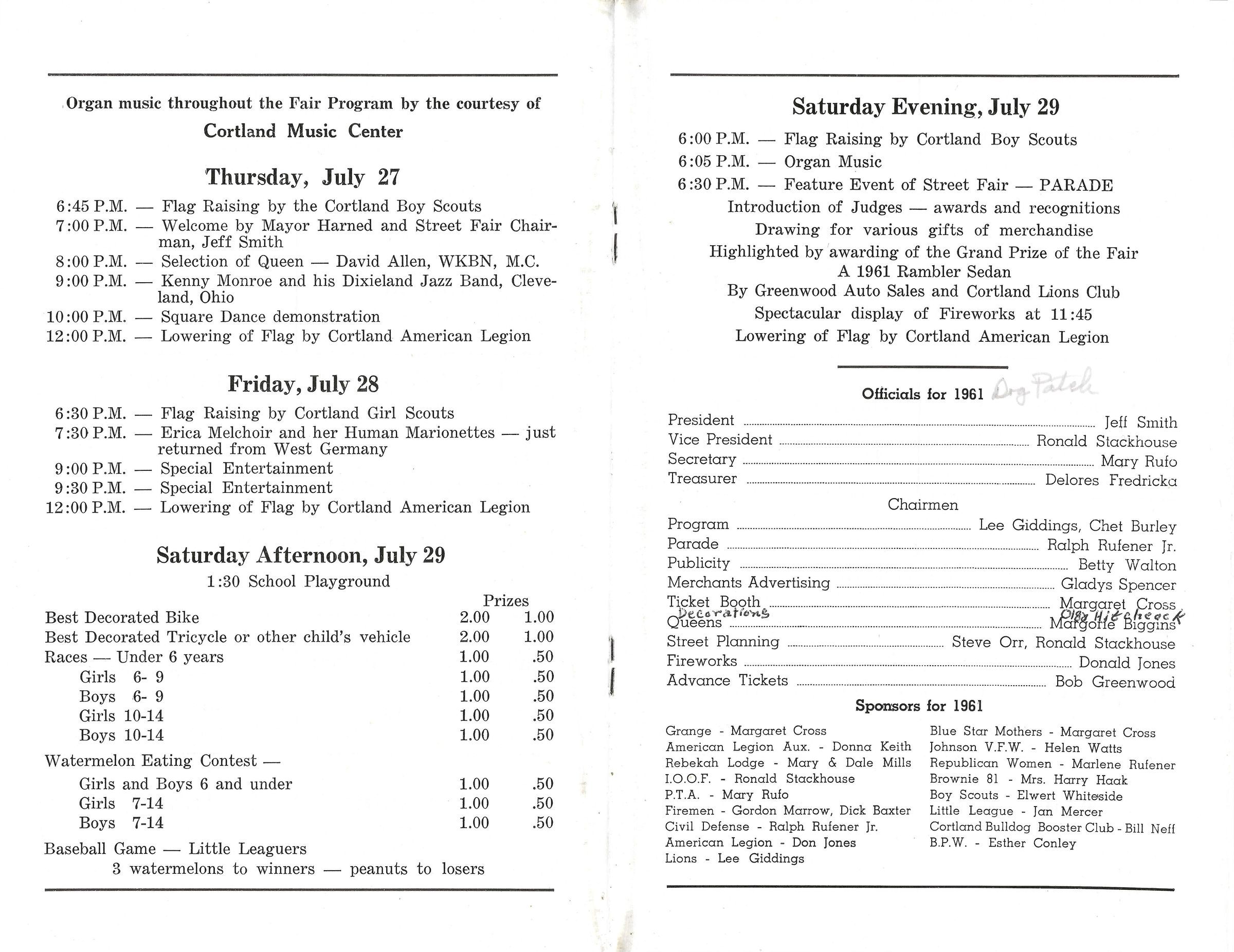 1961 Cortland Street Fair Program
