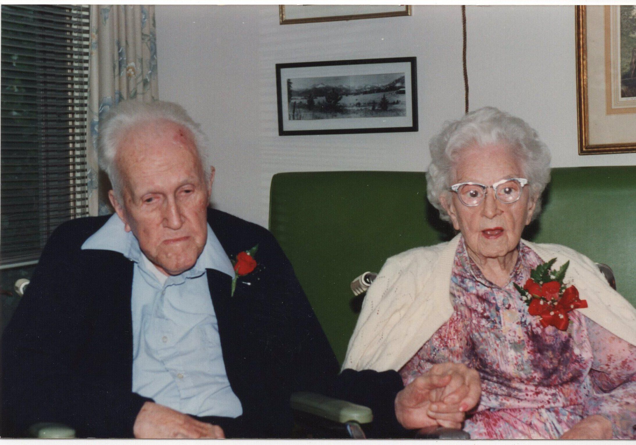 Mark (O.M.) Richards and Gertrude Richards 75th wedding Anniversary - 1988 Mark is 100 and Gertrude is 101 years oldCollection