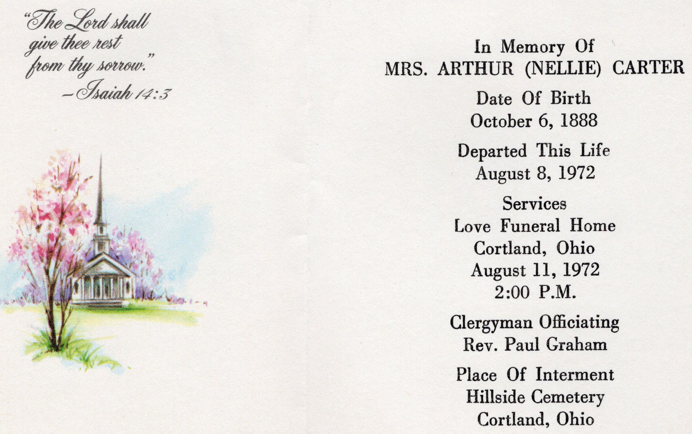 Funeral for Mrs. Arthur (Nellie) CarterEntry/Object ID