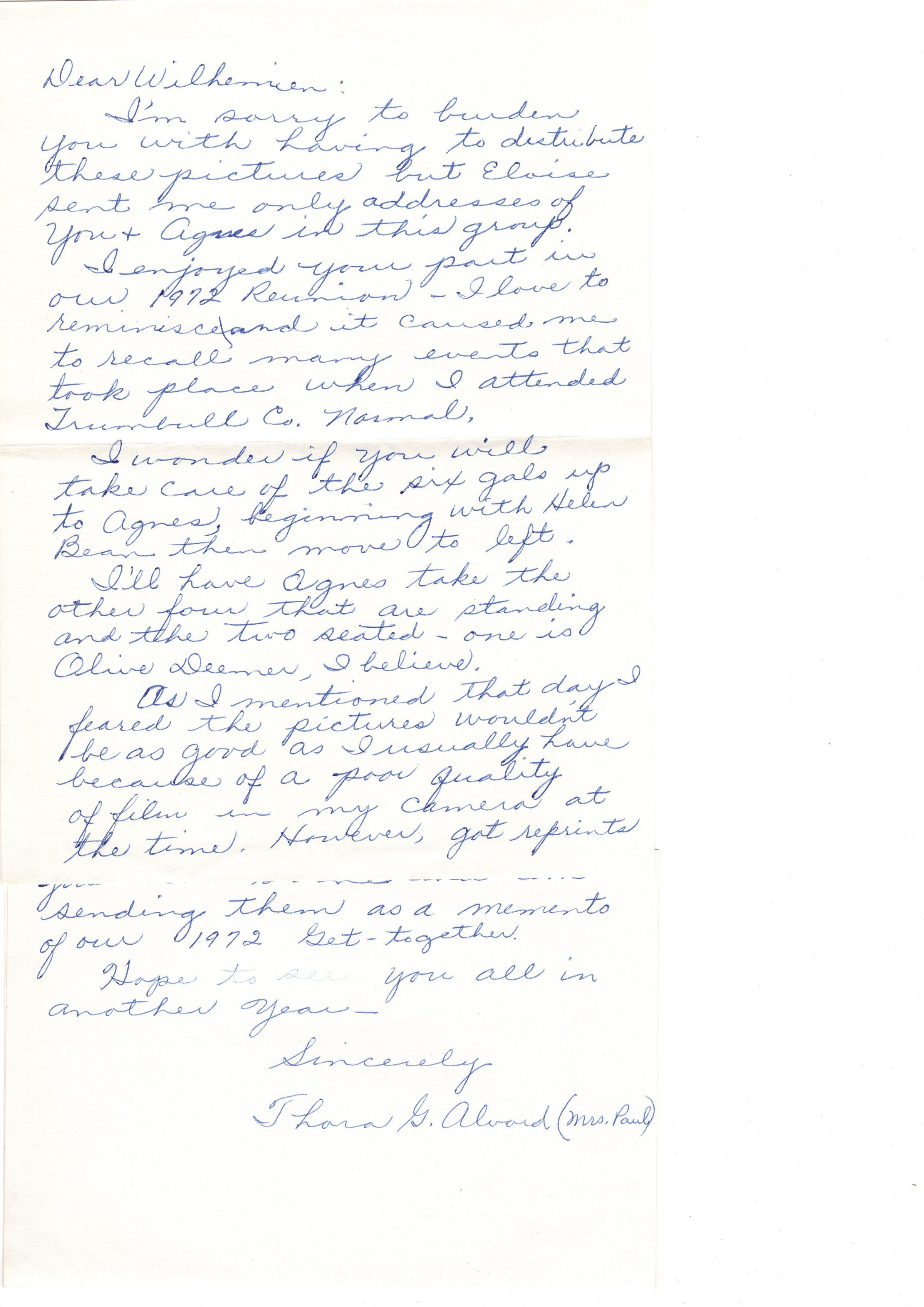 Letters and Photos to Wilhemien Viets from Thora Alward and Agnes Helble 1972Collection
