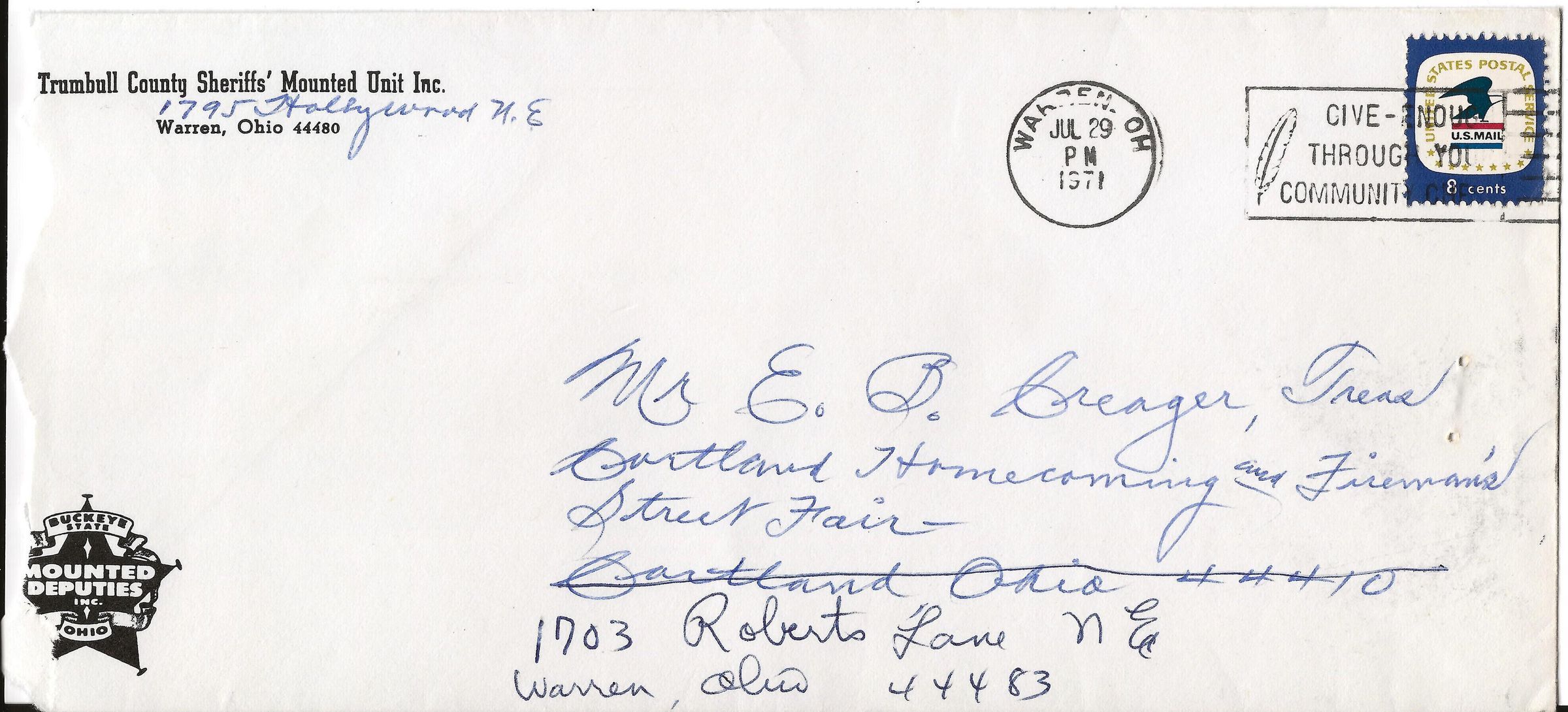 Thank you note from Trumbull County Sheriffs' Mounted Unit, Inc.Collection
