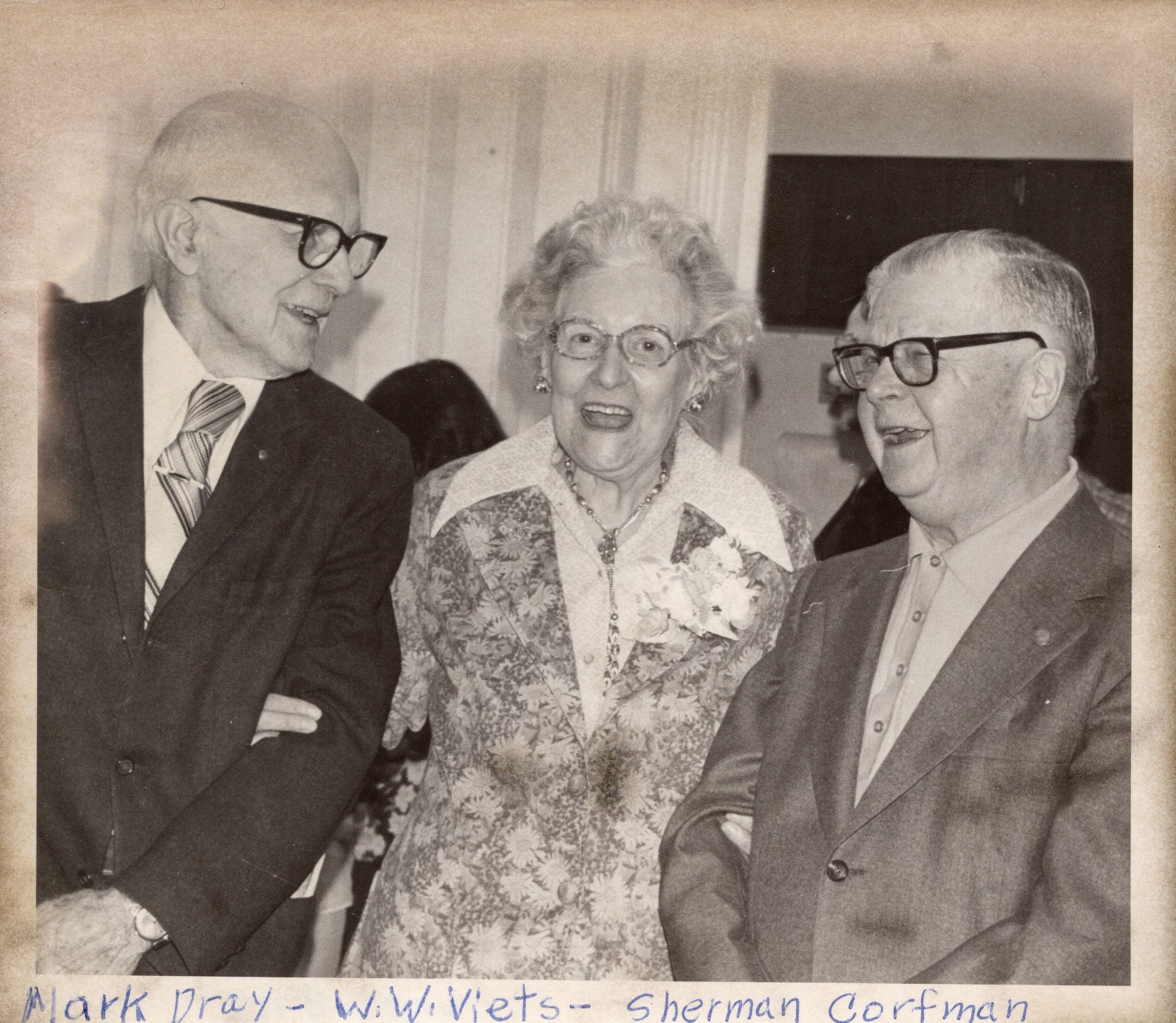Wilhemien W. Viets at 75th Birthday with mark Dray and Sherman CorfmanPhotograph Details