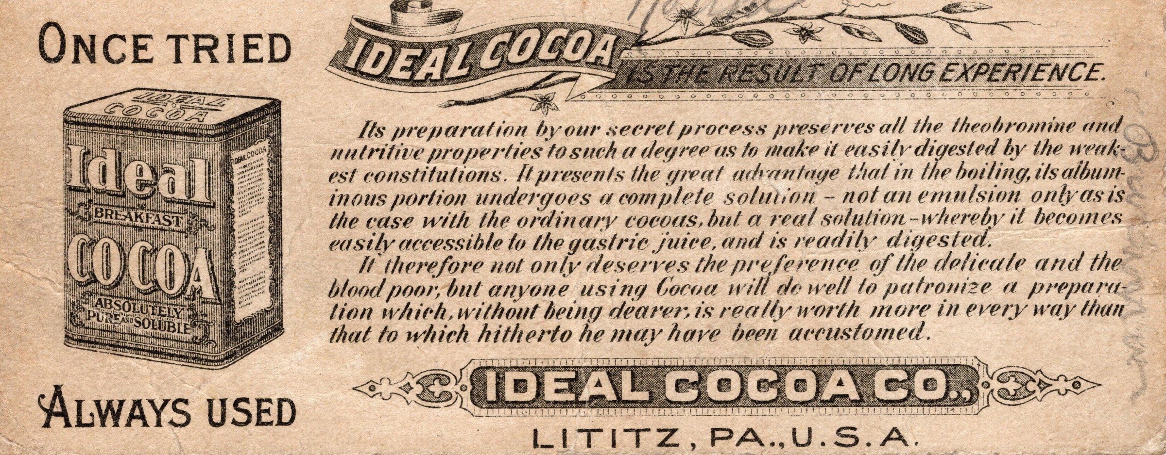 Advertisement for Ideal Cocoa Co. Lititz, PA