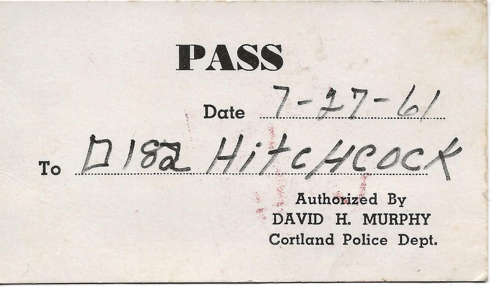 1961 Cortland Street Fair pass issued to Olga HitchcockCollection