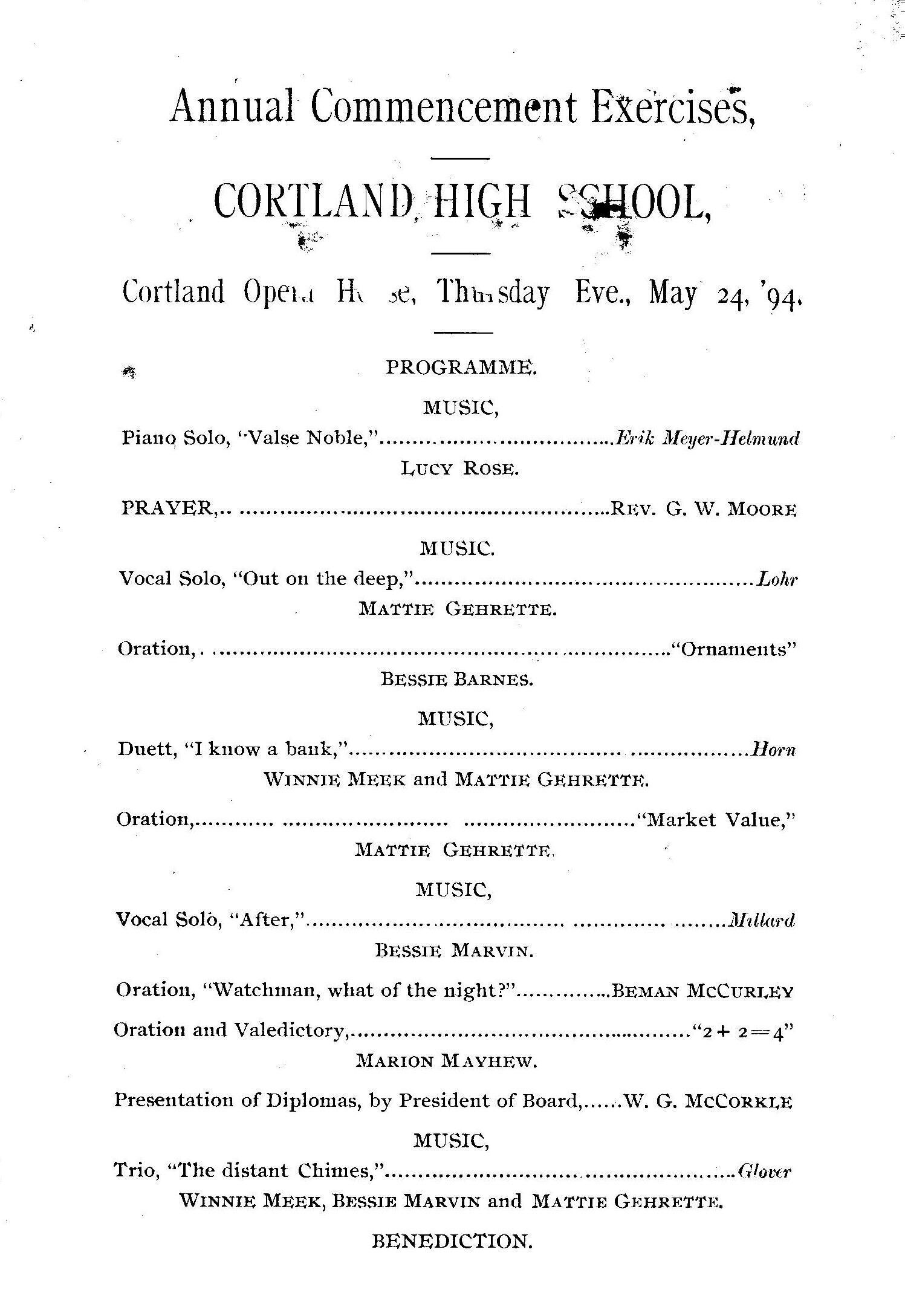Cortland High School Commencement 1894