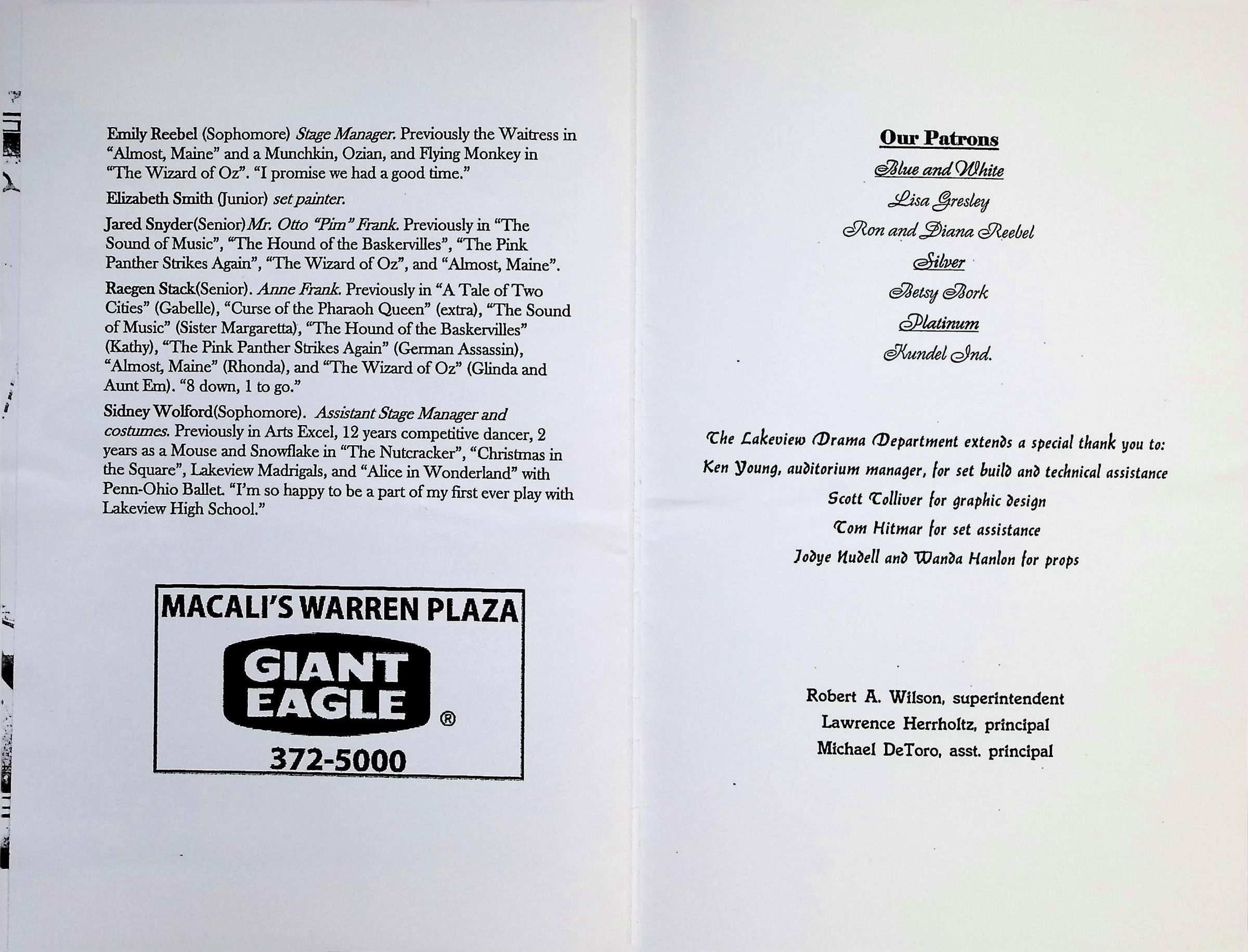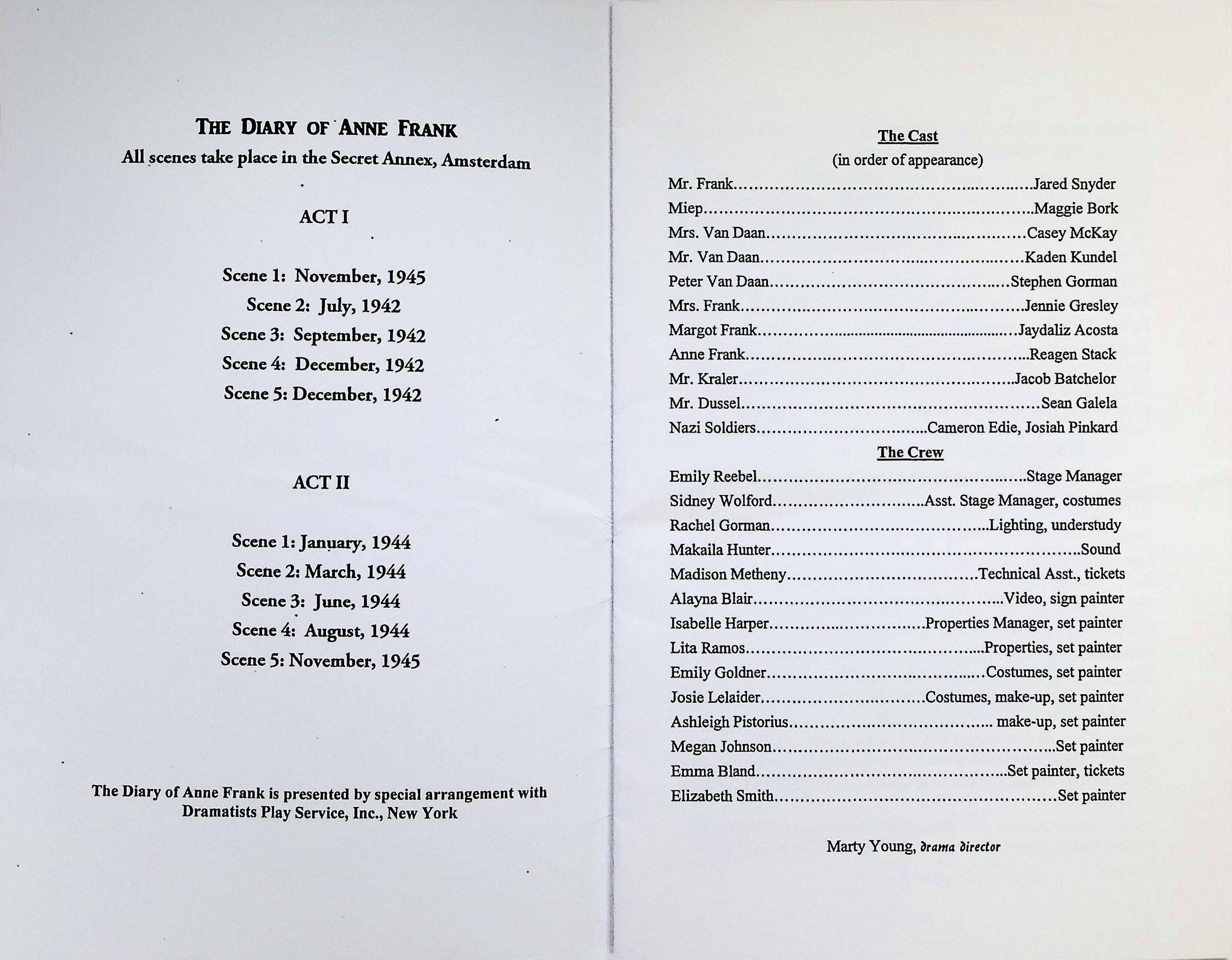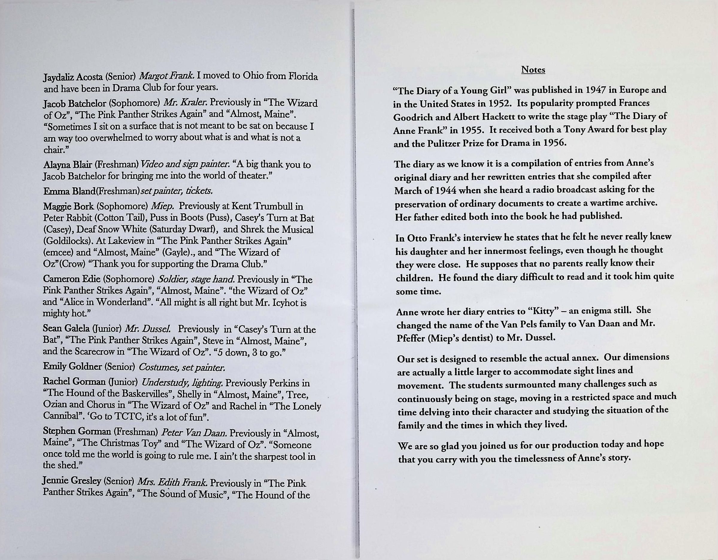 Lake View High School Drama Club Program The Diary of Anna Frank 2017Collection