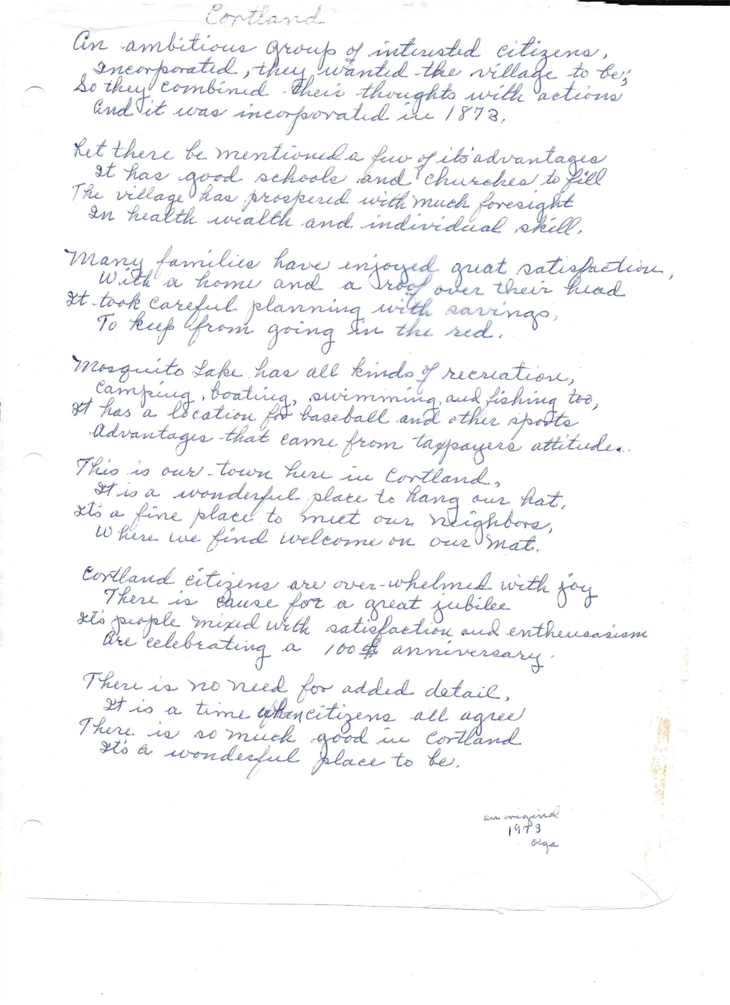 Poem "Cortland" By Olga HitchcockEntry/Object ID