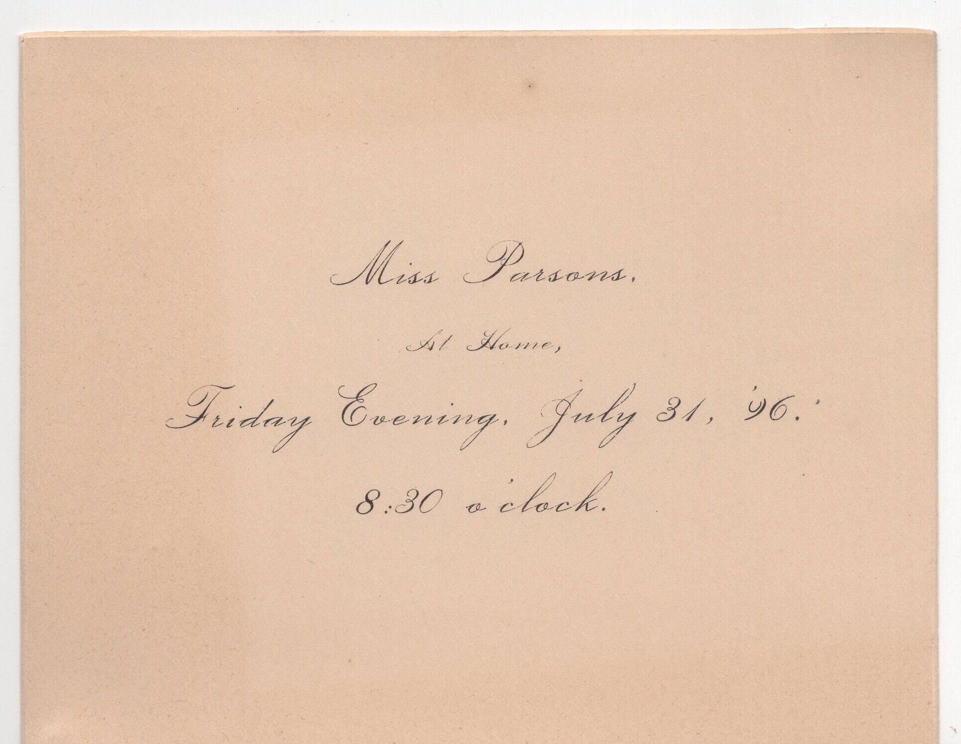 Invitation - Miss Parsons, At Home Friday Evening, July 31, '96 8:30 o'clockCollection