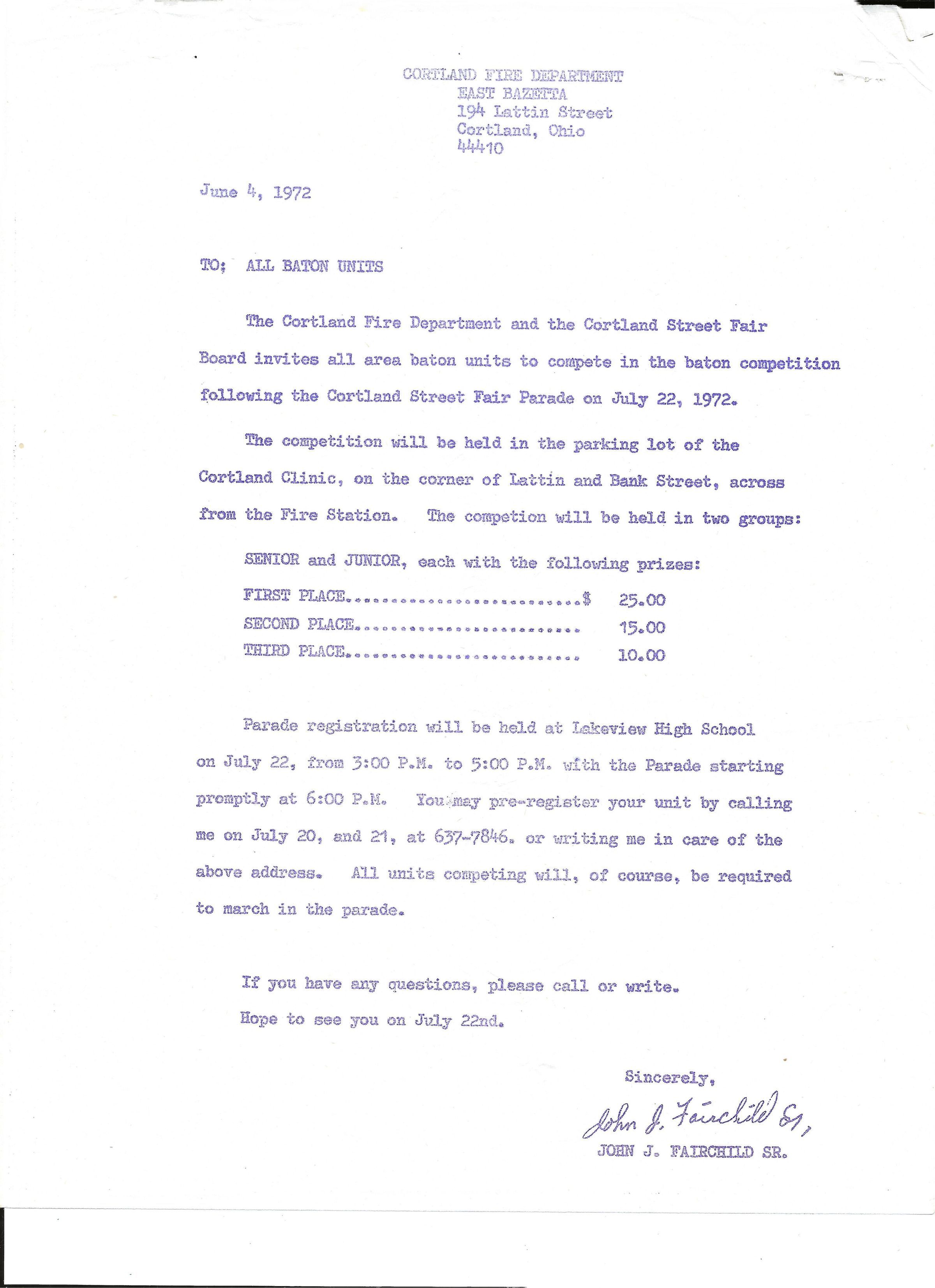 !972 Street Fair Baton Competition. Announcement of prizes, location and times for competition.Collection