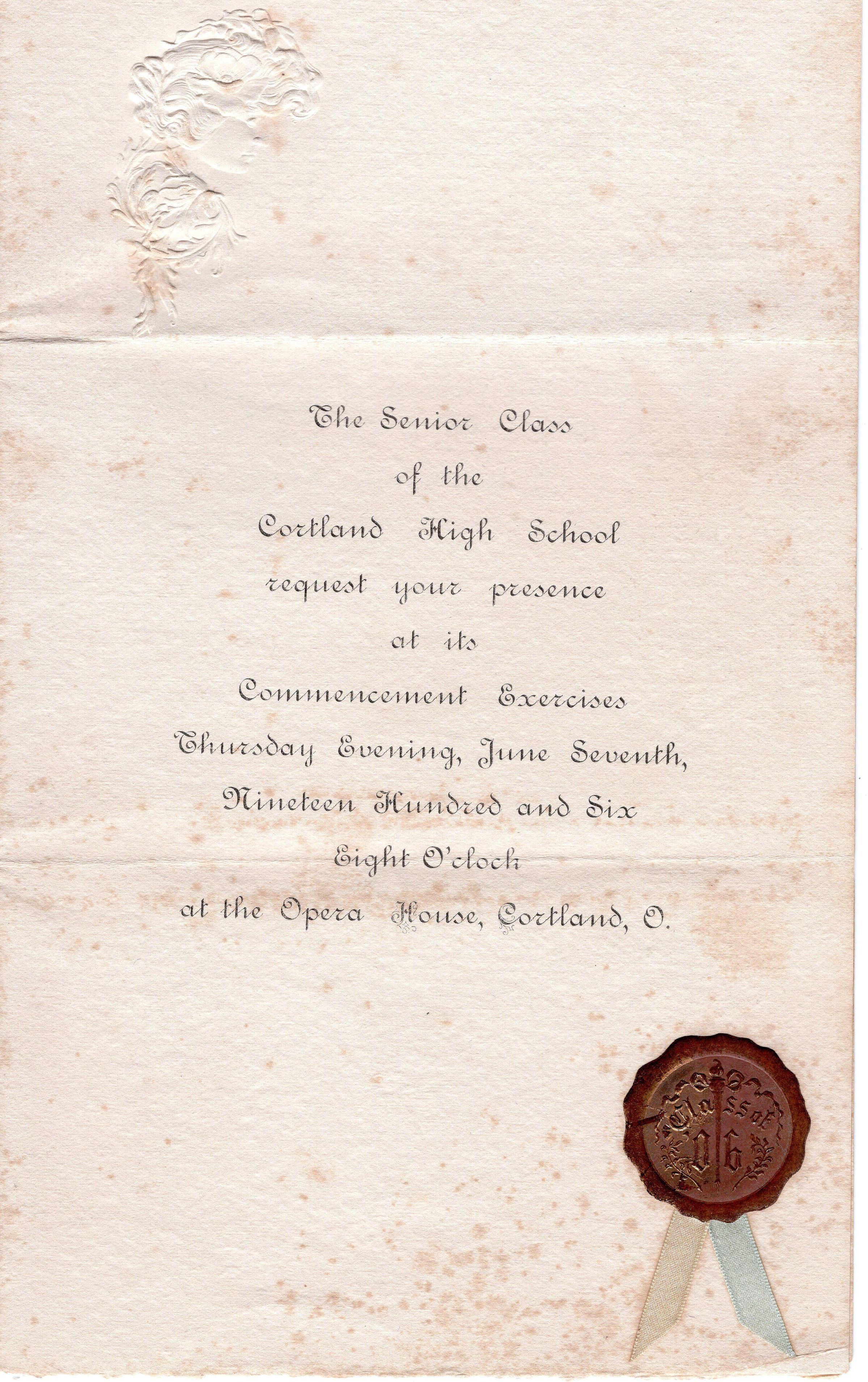 1906 Cortland High School Commencement InvitationEntry/Object ID