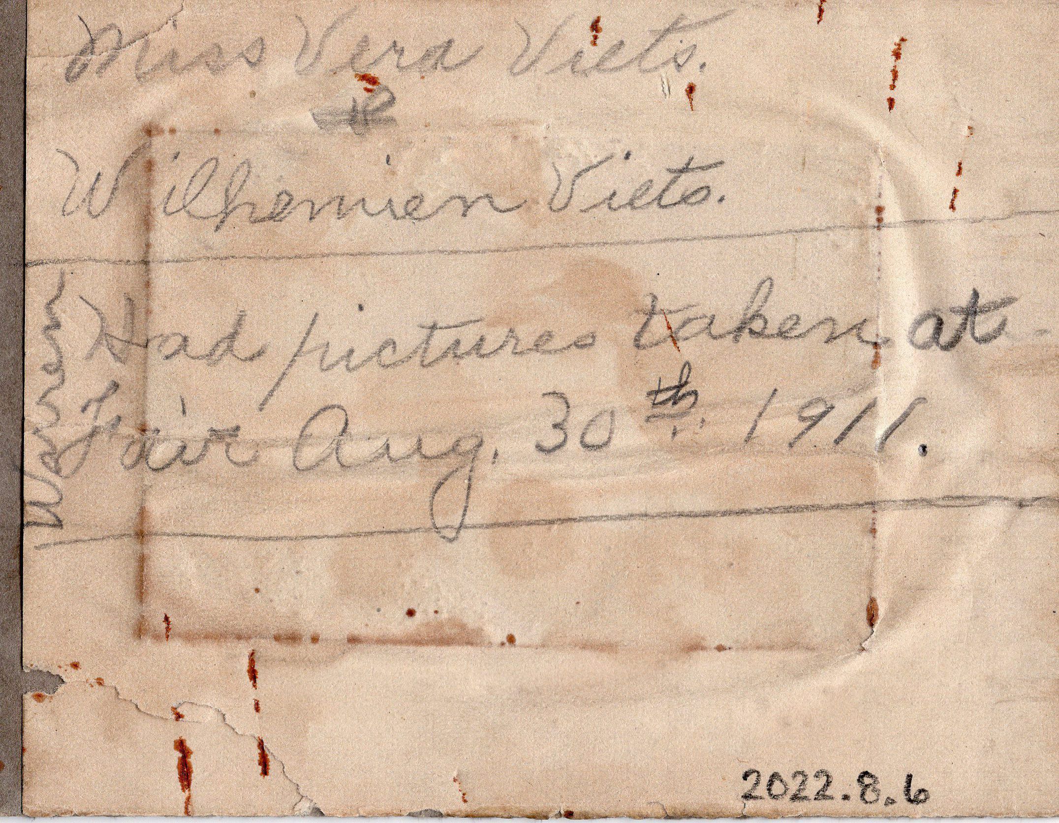Miss Vera and Wilhemien Viets Taken at the Fair in Warren August 30th 1911Photograph Details