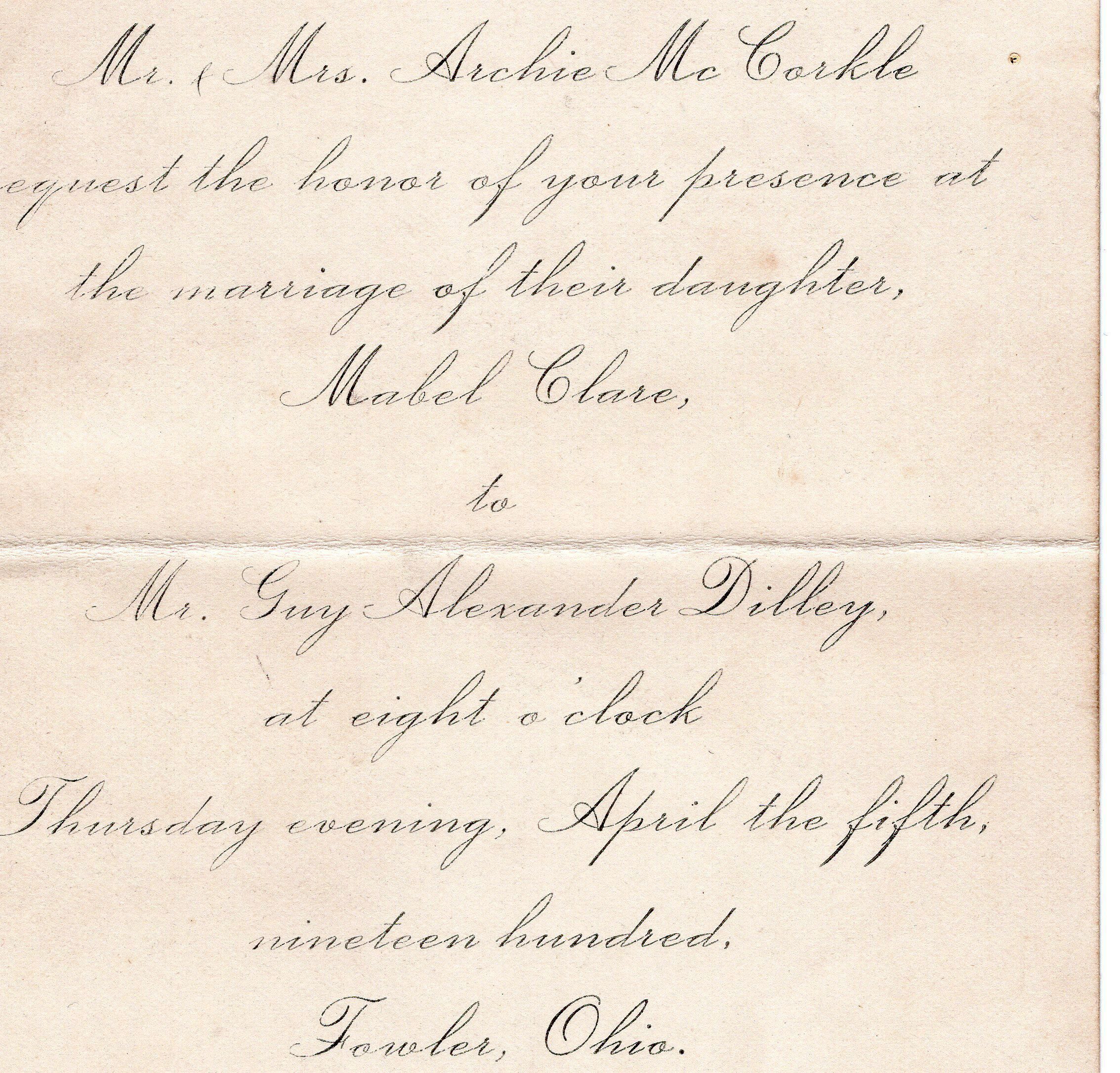 Marriage Invitation for Mabel Clare Mc Corkle and Guy Alexander Dilley From Mr. and Mrs. Archie McCorkleCollection