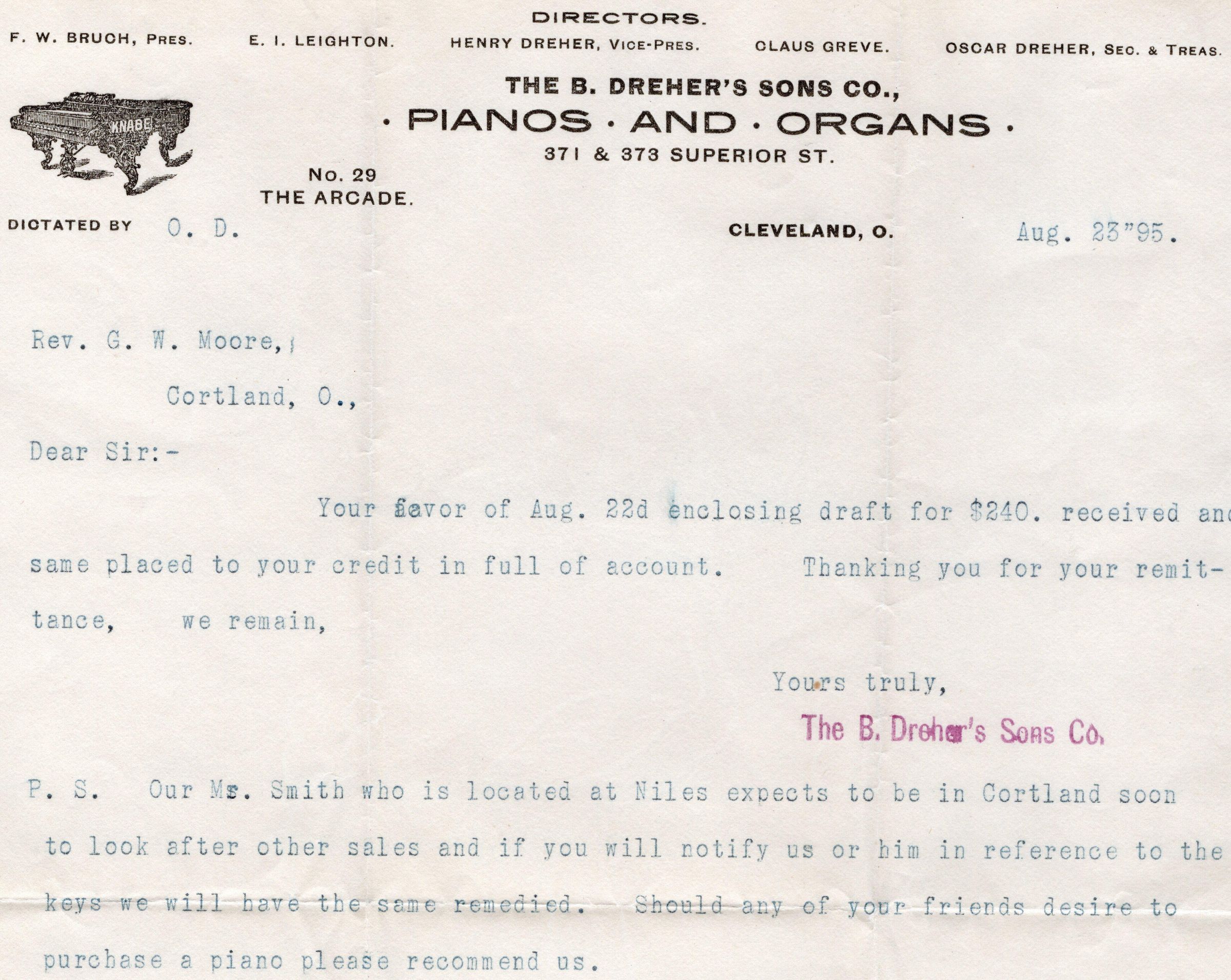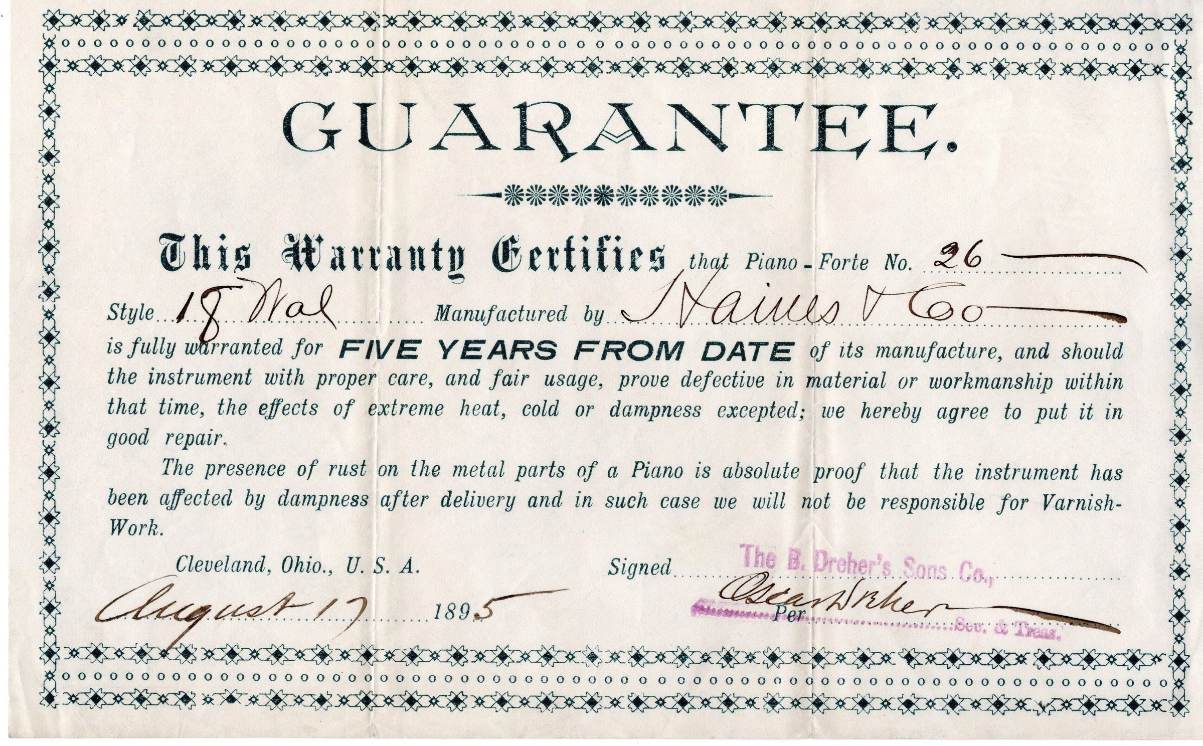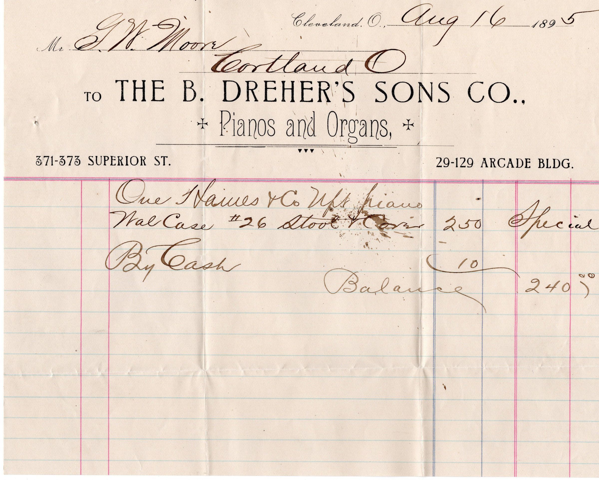 Receipt, Warranty and other documents for Purchase of Upright Piano - 1895Collection