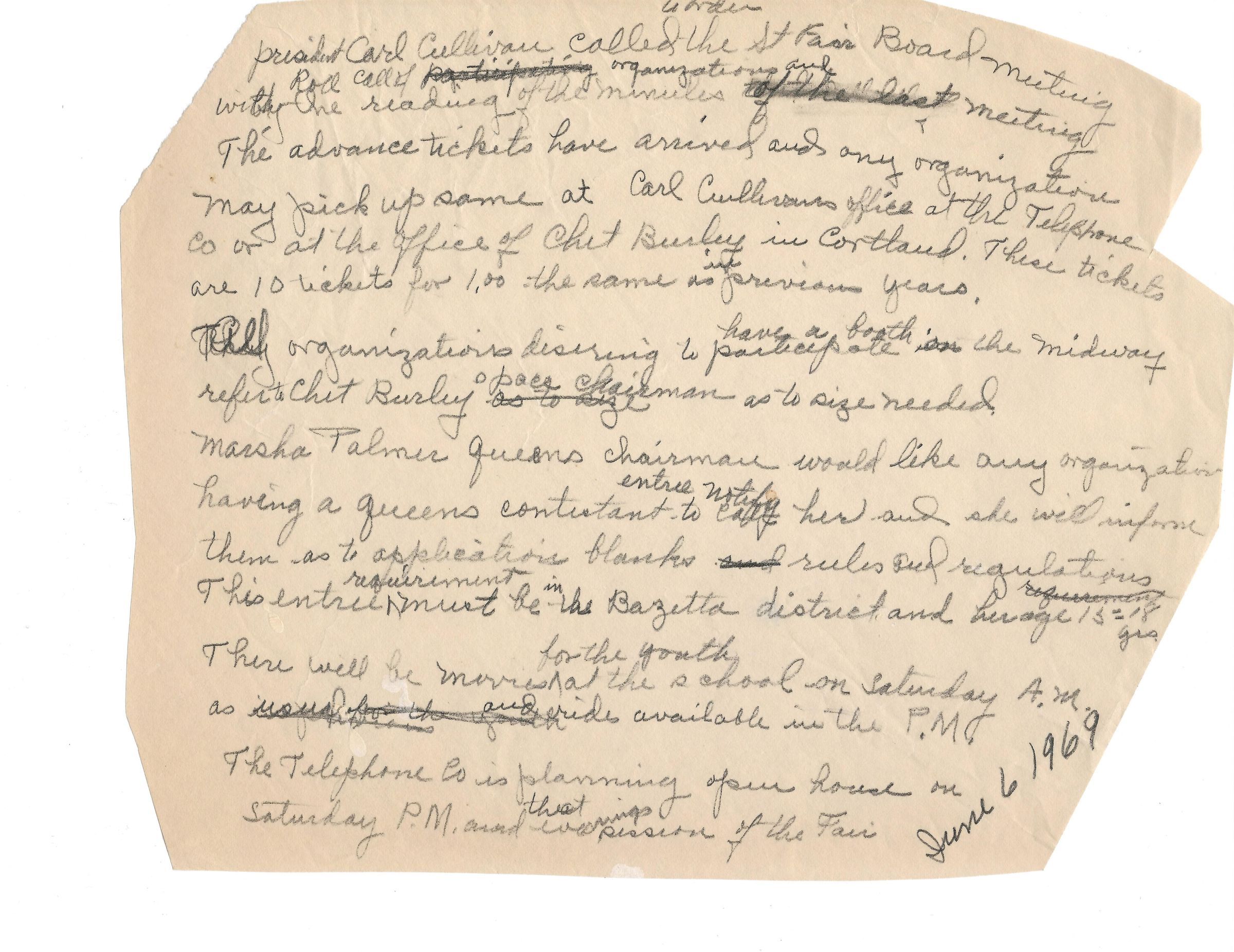 Notes from 1969 Street Fair Committee meetingEntry/Object ID