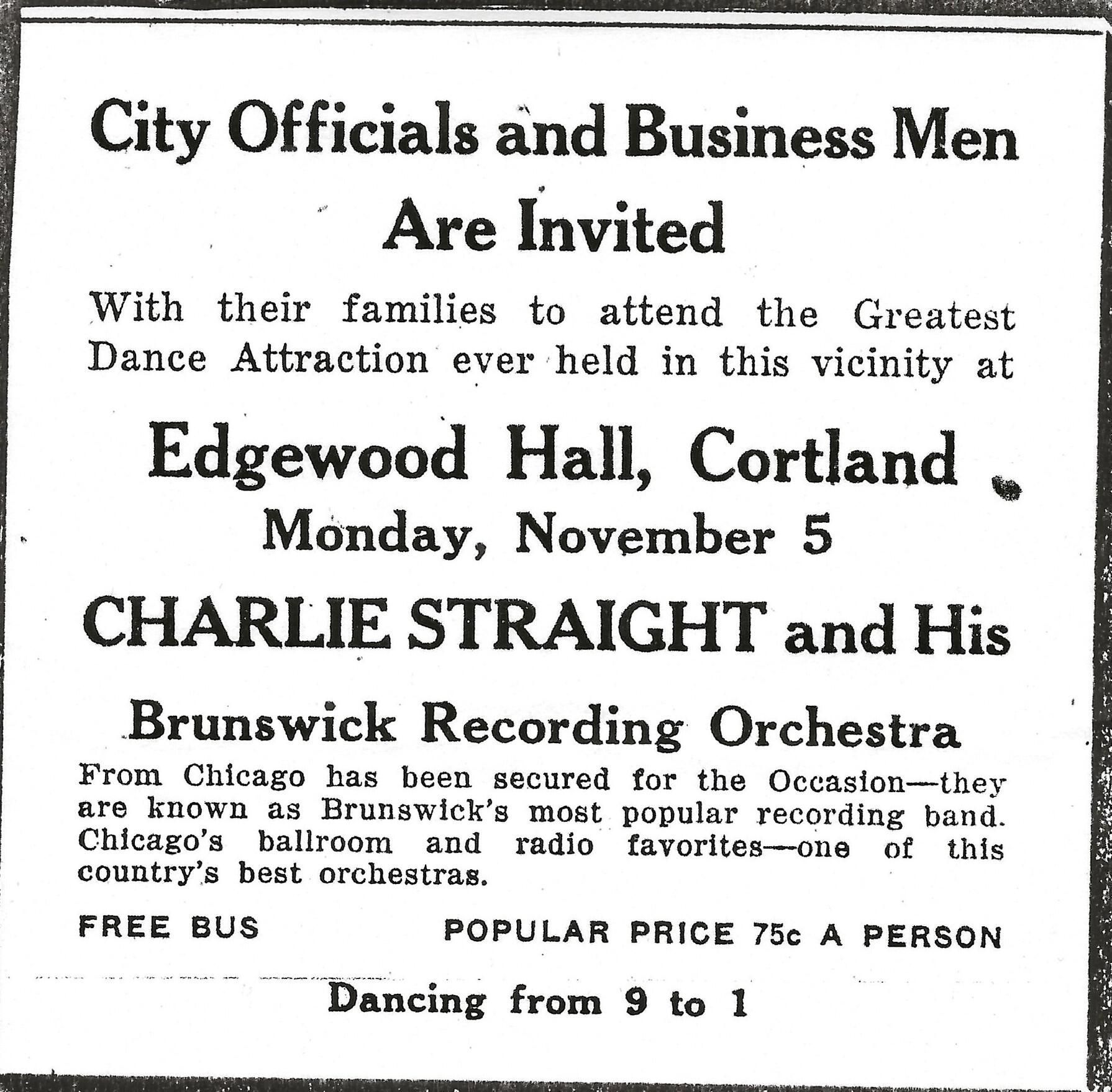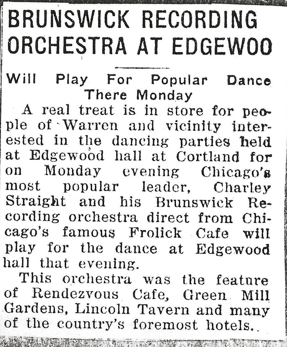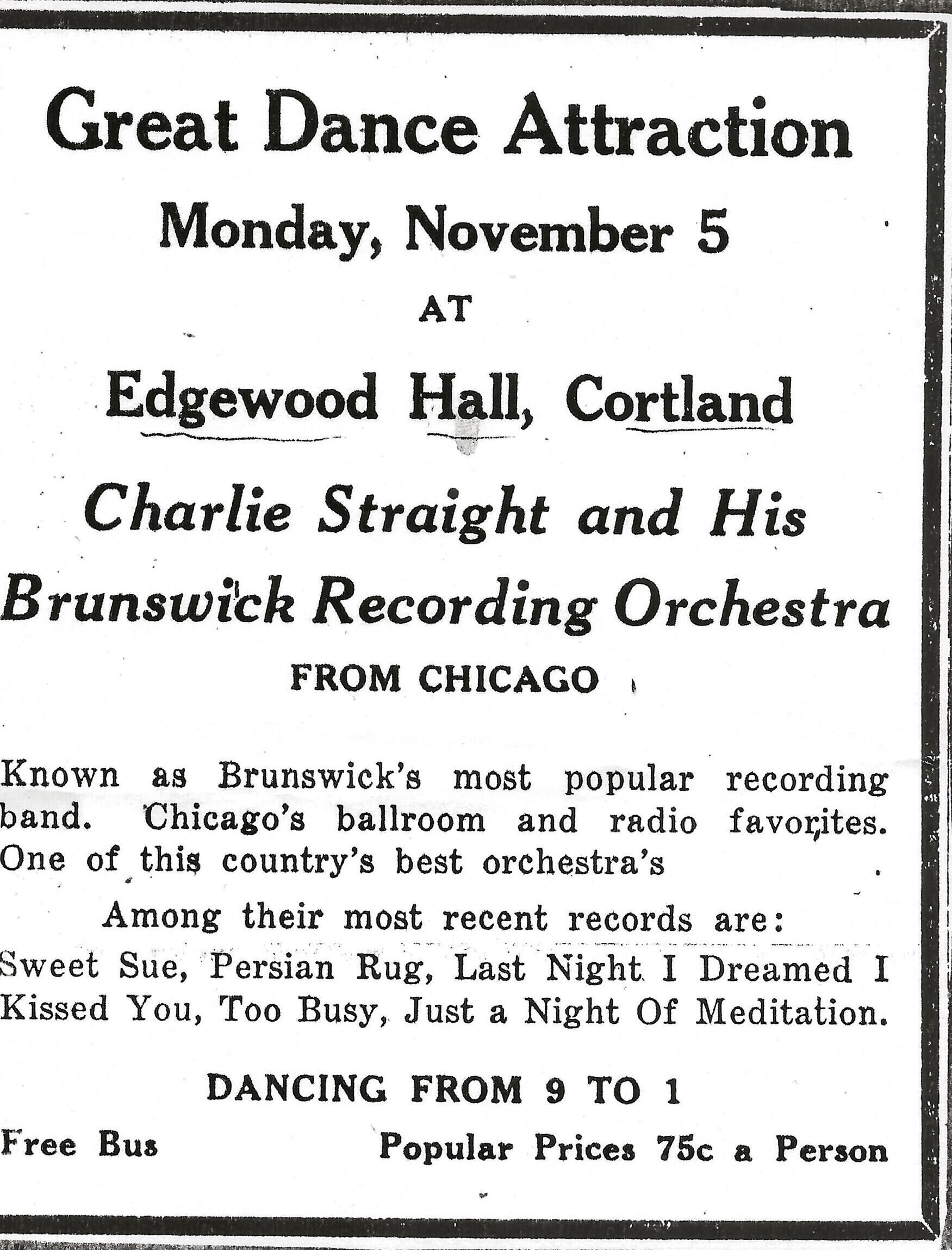 Straight, Charlie, Edgewood Dance Hall, Brunswick Recording Orchestra, Leslie Daniels' Orchestra