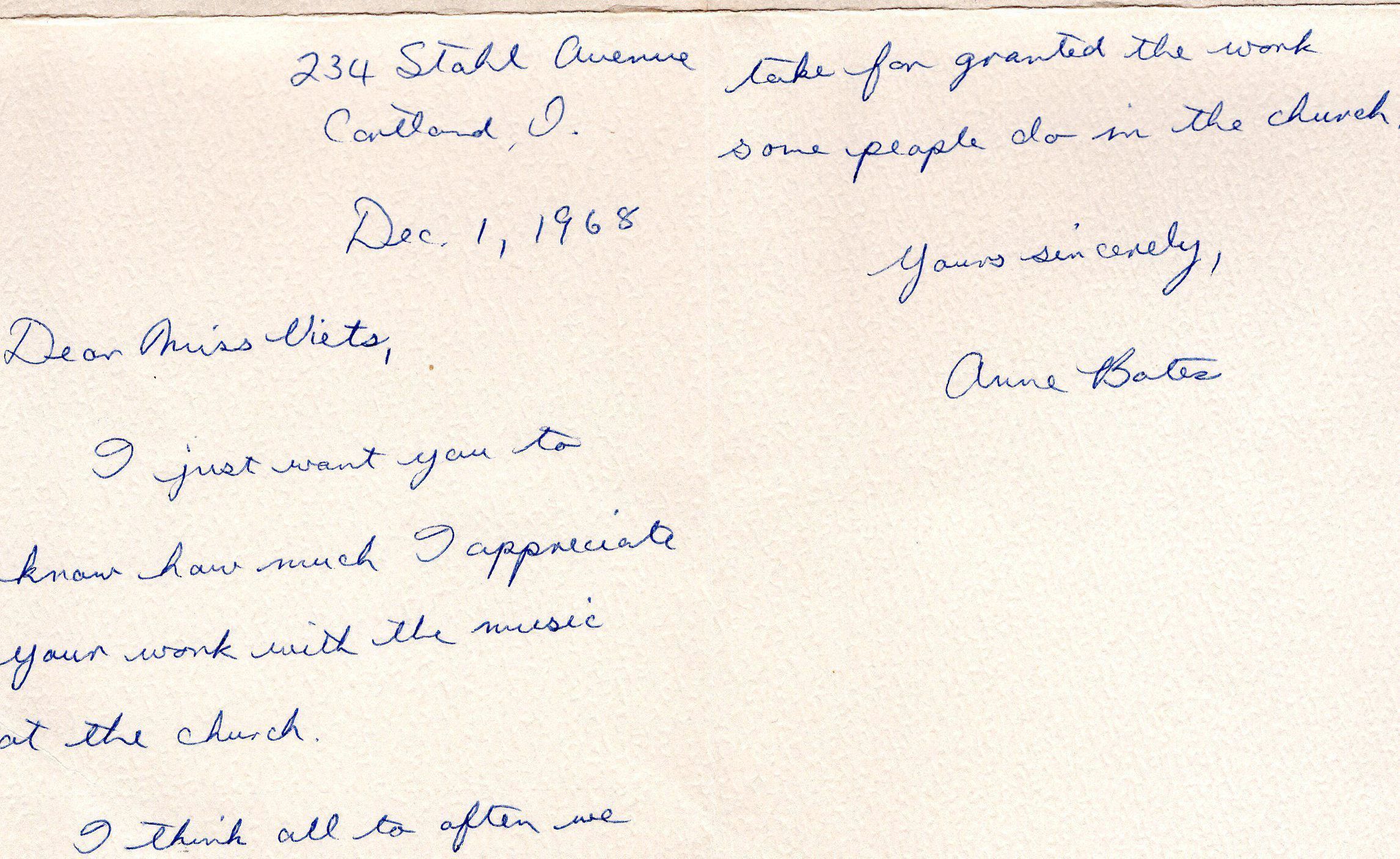 Thank you note from Anne Bates to Wilhemien Viets for MusicCollection