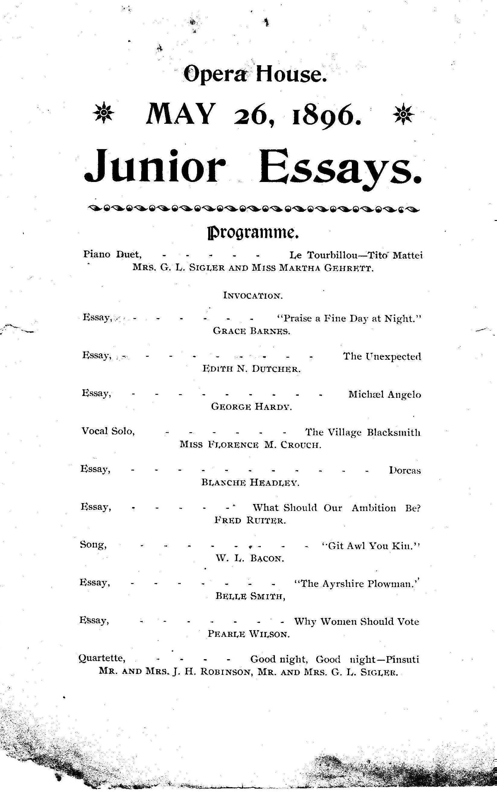 Program for Junior Essays 1896