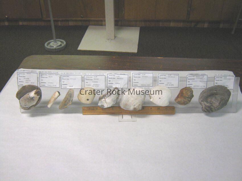 Various bivalves affixed to a plexiglass board. Labeled (see photograph).
