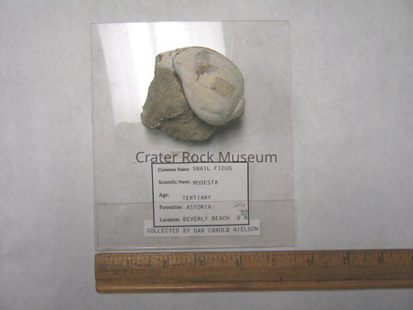 A gastropod fossil identified in the original physical catalog as "Modesta." Modesta is a common specific name among gastropod genera (e.g., Calthalotia modesta), but is not itself a generic name.