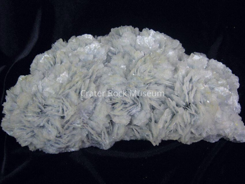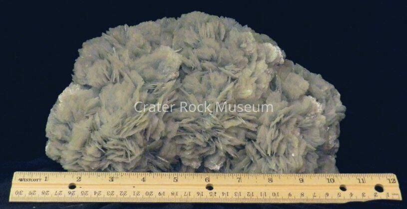 Variety: Barite is a common mineral and makes very attractive specimens. It often is an accessory mineral to other minerals and can make a nice backdrop to brightly colored crystals. At times bladed or tabular crystals of Barite form a concentric pattern of increasingly larger crystals outward. This has the appearance of a flower and when colored red by iron stains, these formations are called "Desert Roses". Because Barite is so common, it can be confused for other minerals. Celestite (SrSO4) has the same structure as barite and forms very similar crystals. The two are indistinguishable by ordinary methods, but a flame test can distinguish them. By scrapping the dust of the crystals into a gas flame the color of the flame will confirm the identity of the crystal. If the flame is a pale green it is barite, but if the flame is red it is celestite. The flame test works because the elements barium (Ba) and strontium (Sr) react in the flame and produce those colors.Collection