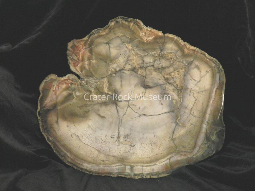 Description: Slab is a complete round, the polished face shows colors of grey tones, white, pink, some brown tones