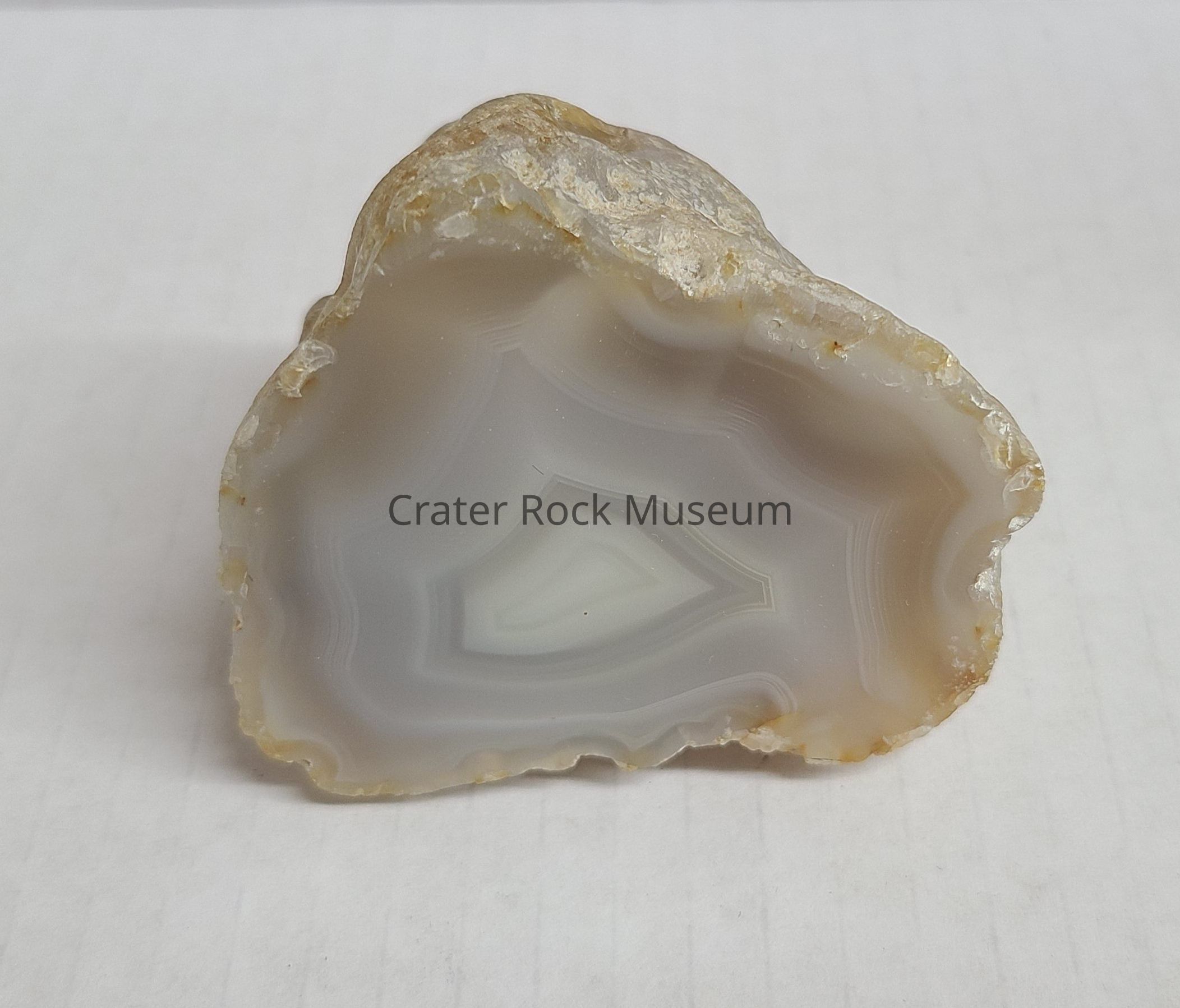 Five Agate Nodules and two slices of Agate from Bear Creek, Jackson County, OR. Varying in size. Polished sidesshow fortified Agate in colors ranging from White to Yellows to Pinks to Greys to Blues. One contains Crystals. Cracks present in four.Dimensions
