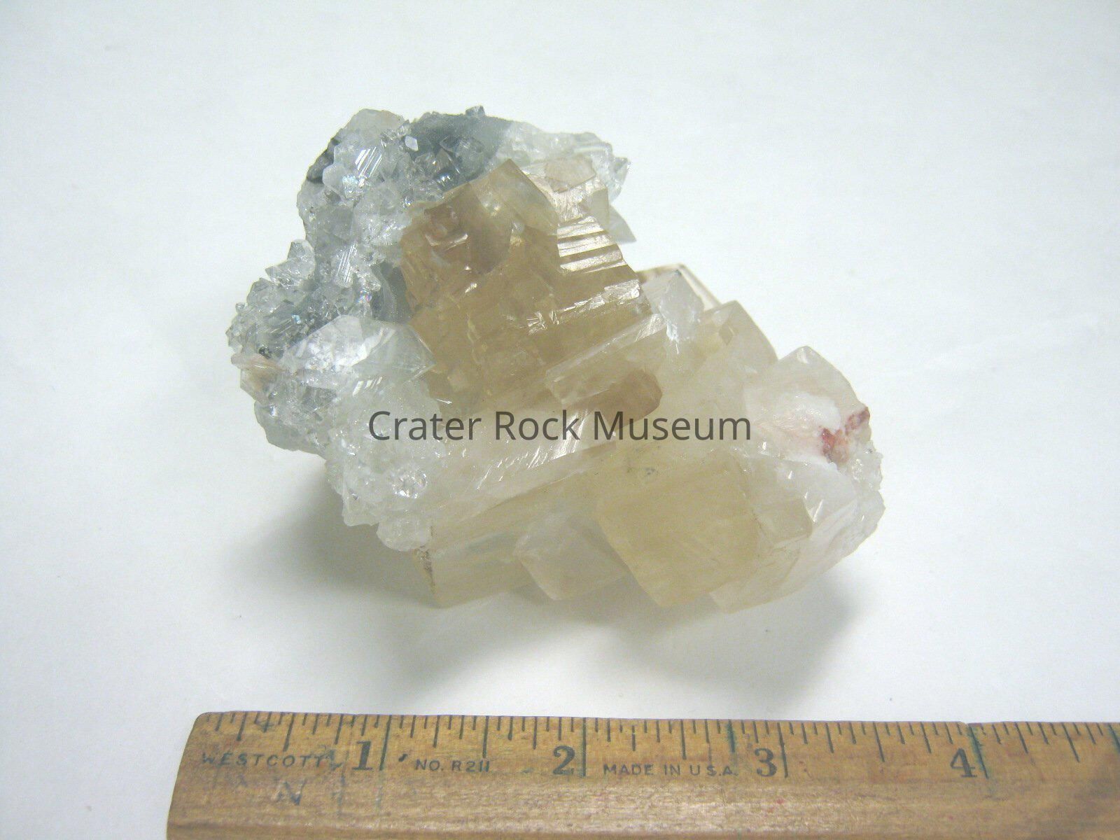 Associated Minerals are numerous but include these classic associations: Fluorite, quartz, barite, sphalerite, galena, celestite, sulfur, gold, copper, emerald, apatite, biotite, zeolites, several metal sulfides, other carbonates and borates and many other minerals.