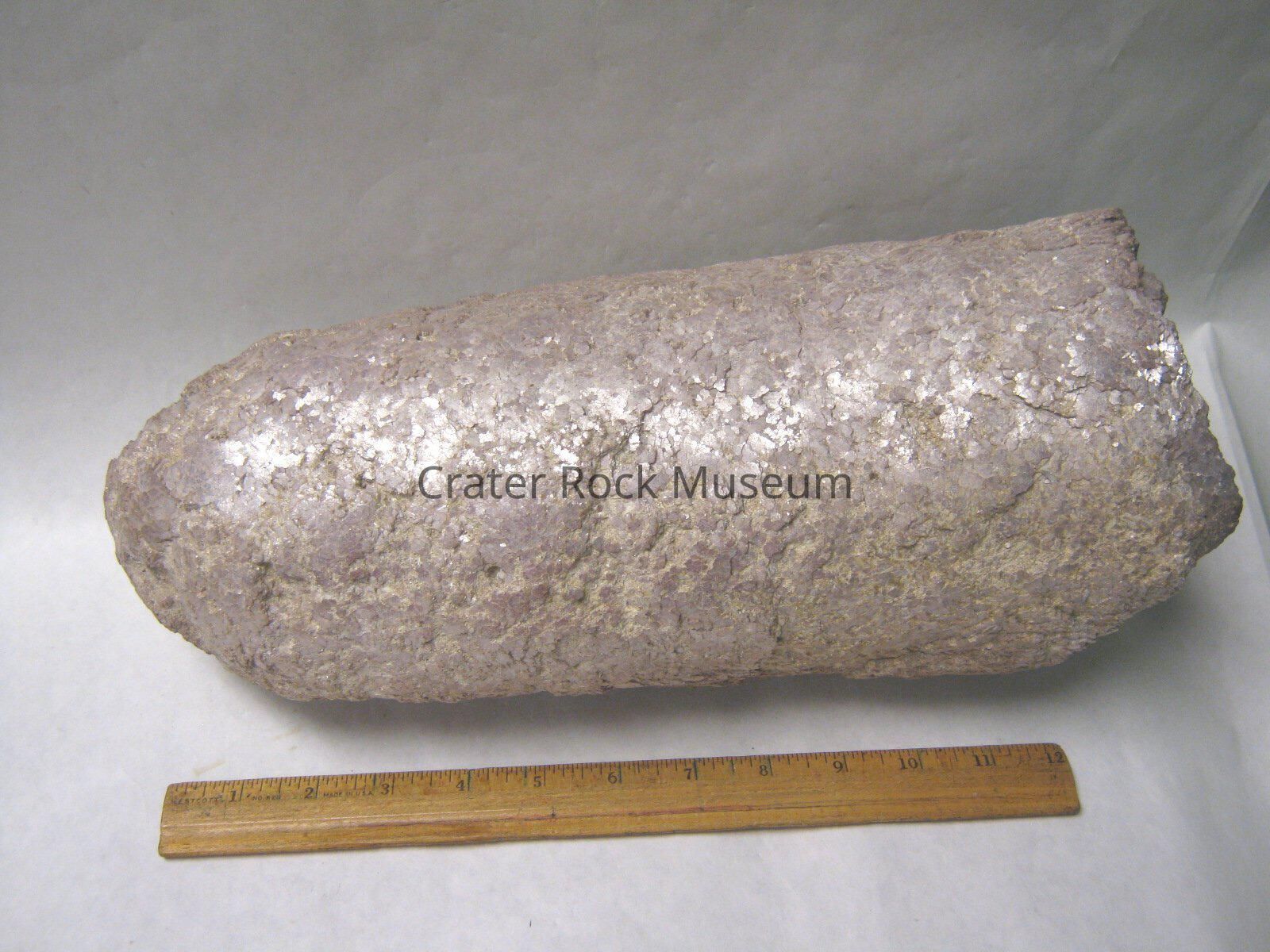 Description: Large cylindrical, scaly, layered, lilac colored crystalline structure with a relatively smooth appearance.