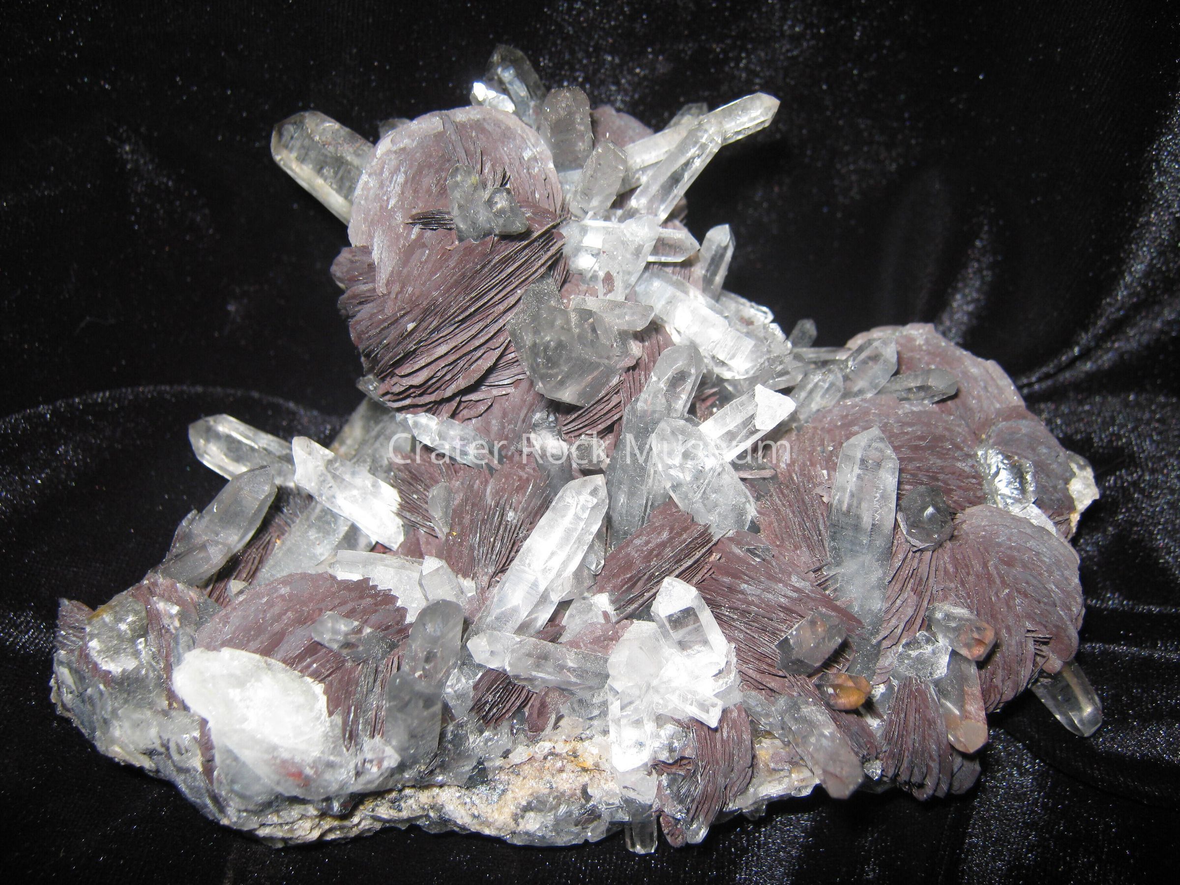Crystal Habits include tabular crystals of varying thickness sometimes twinned, micaceous (specular), botryoidal and massive. also earthy or oolitic. Hematite Rose is a circular arrangment of bladed crystals giving the appearance of the flower of a rose.